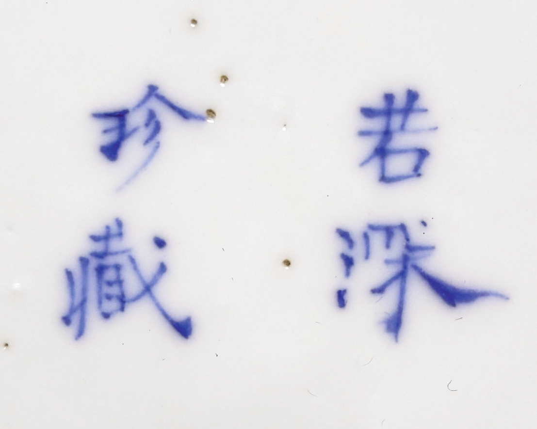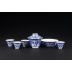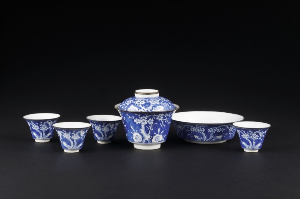 清晚期 若深珍藏款 藍地白花花卉紋茶具 六件一組