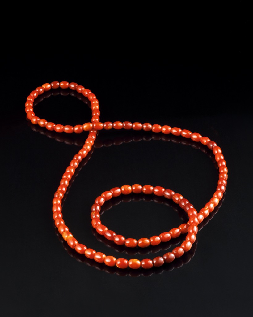 據《般若經》所載,琥珀為佛教七寶之一,象徵「戒定真香」,其色澤沉穆、質地溫潤,自古即被視為莊嚴法器與修行供具之上品,深具宗教意涵與供養價值。念珠作為修持法門之一,藉持誦計數以凝神攝念,而以琥珀為材者,尤顯法性清淨與德行圓滿。