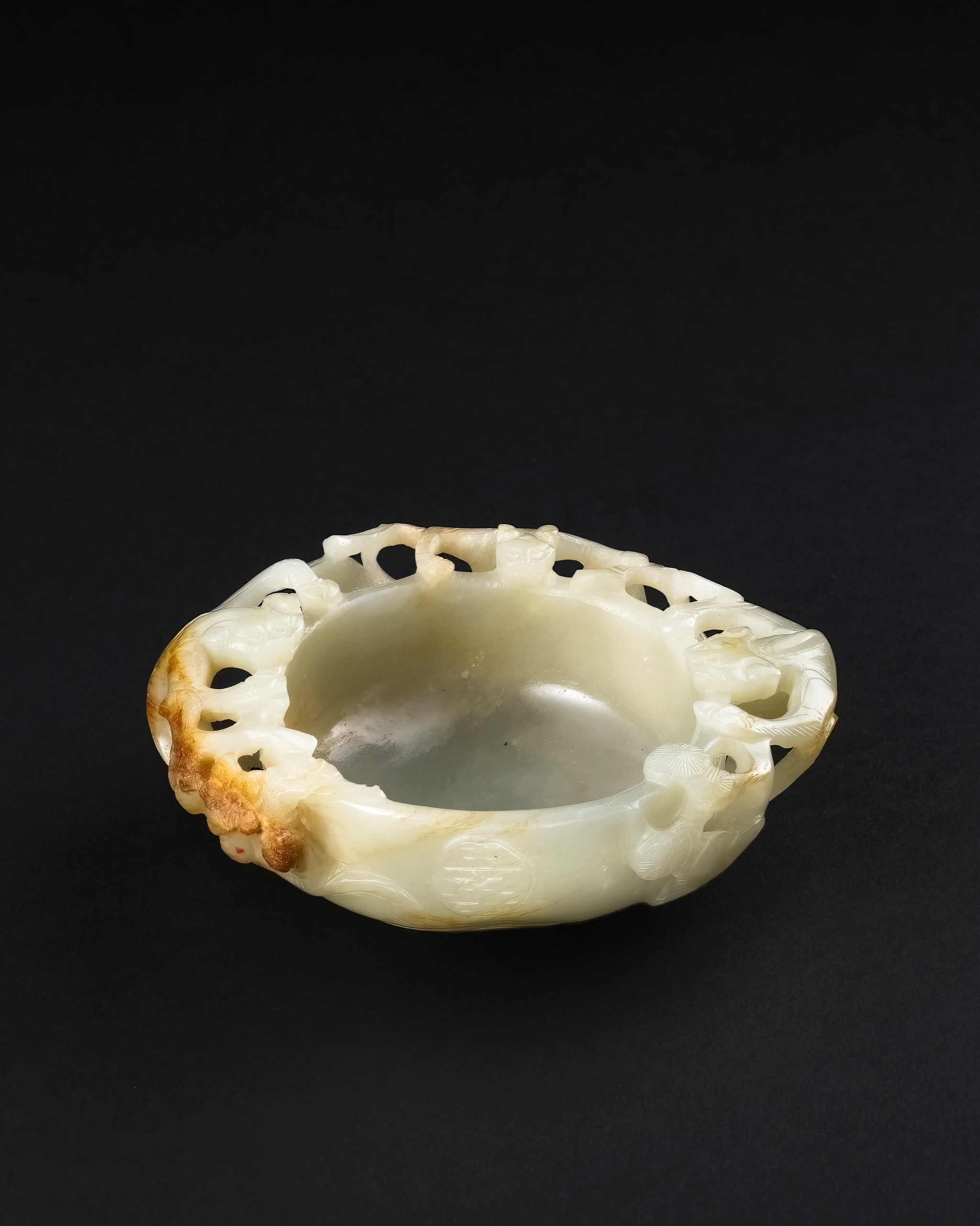 《禮記》云:「君子無故,玉不去身」,玉為德之象徵,自古為君子所佩。明代以來,玉盃廣用於茶酒雅集,亦可作祝壽敬老之用,宮廷中更有「奉玉壽觴」之禮,寓以玉敬賢,以酒祝壽,誠為吉祥、尊榮與高雅兼備之文房佳器。