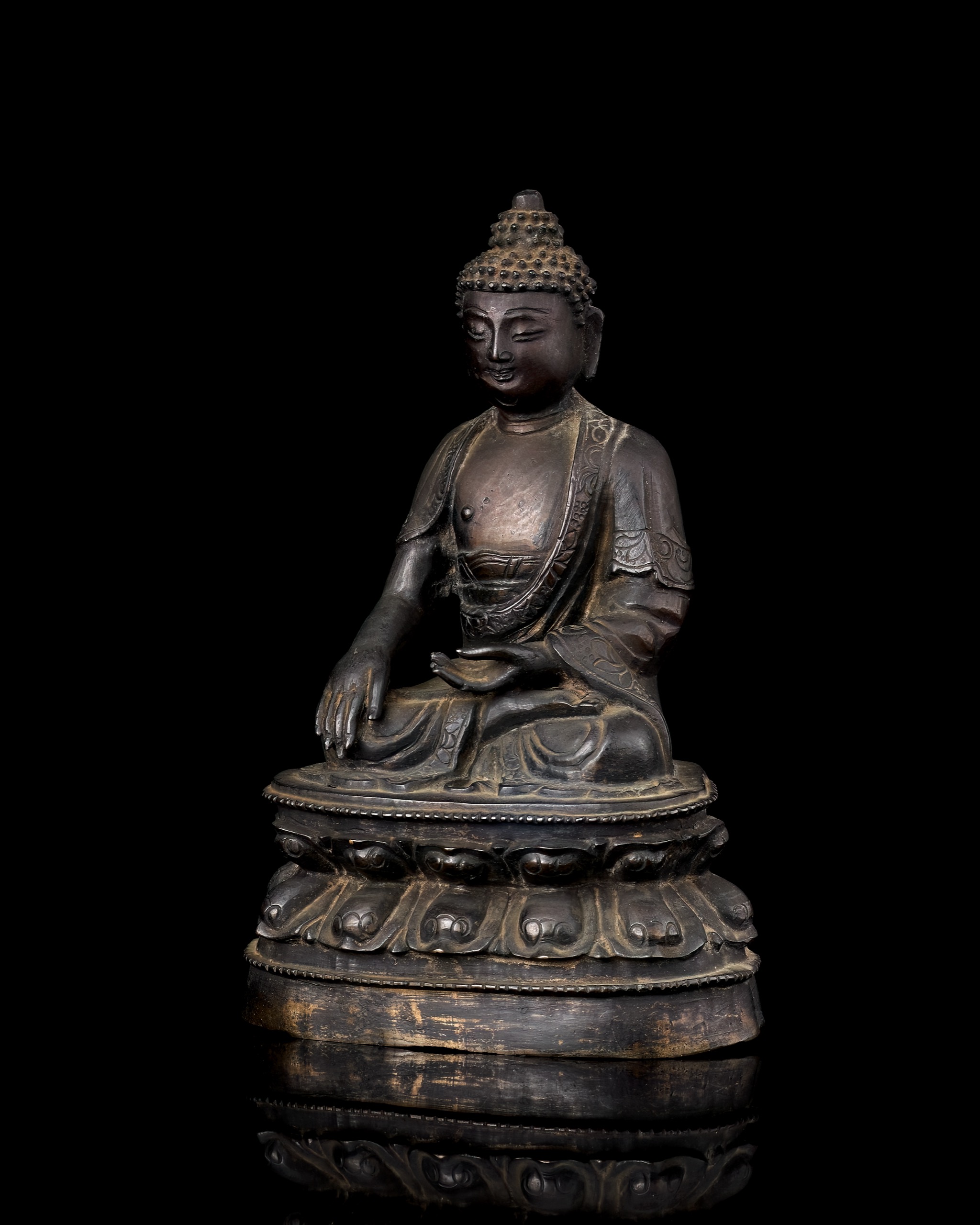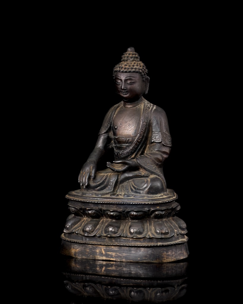 首頁 拍品總覽 2025秋季 share Lot. 1069 明 銅雕釋迦牟尼 NT$ 80,000-120,000RMB¥ 16,000-24,000HK$ 20,000-30,000 媒材/尺寸 H16.3cm 來源 清心堂珍藏,編號337 賞析 佛陀眉眼低垂,神情恬靜安詳,髮髻高聳呈螺髮狀,氣韻沉靜內斂。軀幹比例勻稱,胸膛豐滿,肩臂圓厚,體態穩健。右手施觸地印,象徵降伏魔障、悟道成佛,左手結禪定印,安置腹前,表現靜觀內證之姿。 登記競投 返回拍品列表 拍品推薦 1060 明 白玉人物山子 預估價:NT$ 800,000-1,000,000 2025秋季 1057 明 青白玉饕餮紋簋式爐 預估價:NT$ 300,000-400,000 2025秋季 1078 明 銅雕護法 預估價:NT$ 200,000-300,000 2025秋季 1023 晚清/民國 粉彩描金龍紋碗 預估價:NT$ 100,000-150,000 2025秋季 1003 民初 陽羨茗壺岩如款內紫外紅茄段壺 預估價:NT$ 10,000-20,000 2025秋季 1033 薛平南刻 " 過眼雲煙四十年"善伯石章 預估價:NT$ 10,000-20,000 2025秋季 1115 明隆慶 青花龍鳳呈祥紋六方罐 預估價:NT$ 1,000,000-1,500,000 2025秋季 1032 薛平南刻 "孤陋寡聞" 善伯石瓦鈕方章 預估價:NT$ 10,000-20,000 2025秋季 1068 西藏 15世紀 銅鎏金佛首 預估價:NT$ 80,000-120,000 2025秋季 1092 錢瘦鐵刻 "天靈"壽山石方章 等 三件一組 預估價:NT$ 60,000-80,000 2025秋季