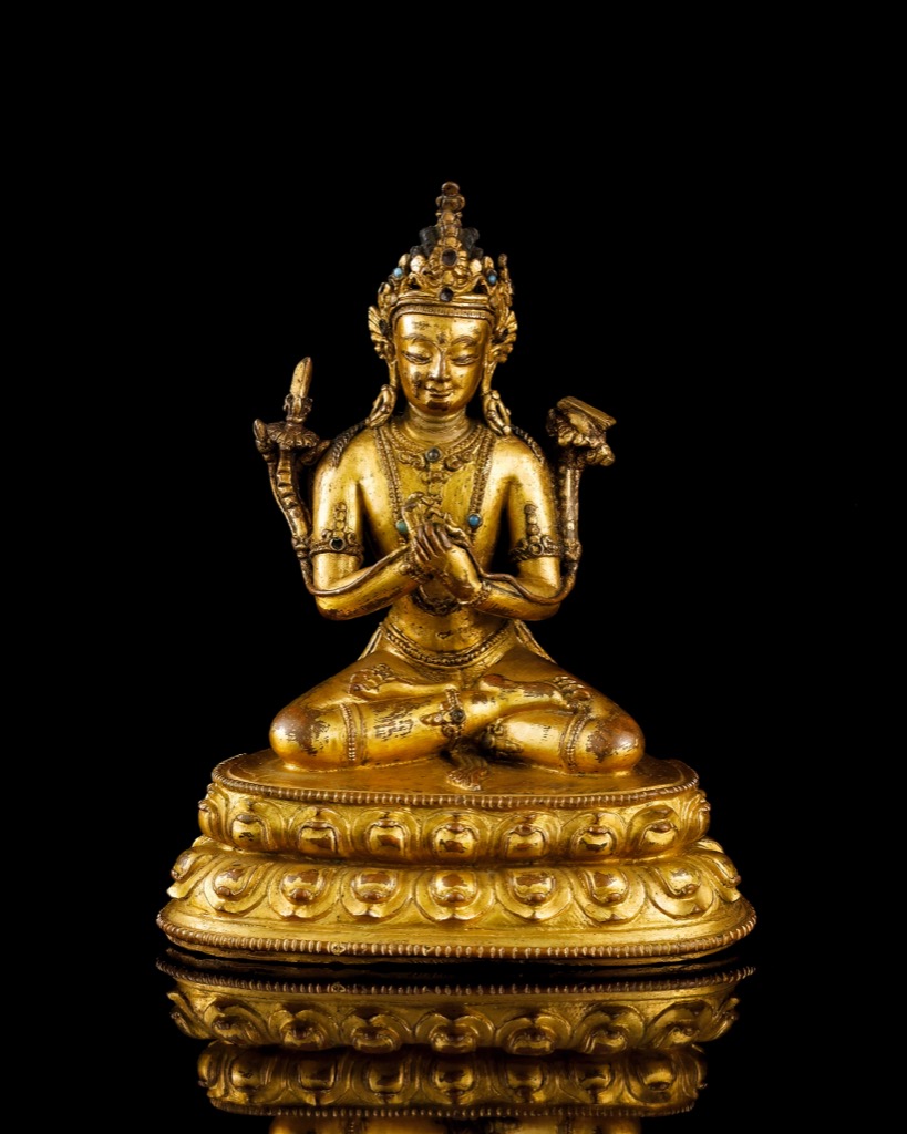 西藏 14/15世紀 銅鎏金文殊菩薩
