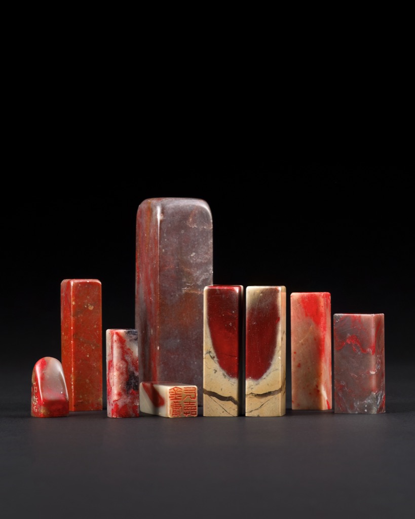 首頁 拍品總覽 2025秋季 share Lot. 1091 昌化雞血石方章 九件一組 NT$ 160,000-220,000RMB¥ 32,000-44,000HK$ 40,000-55,000 媒材/尺寸 H2.9-8.9cm 賞析 此組昌化雞血石印章,形式各異,石質整體細潤,血色於章體間自然分佈,濃淡變化明顯,呈帶狀、斑點或片層等多種形態。色層過渡與紋理走向均屬天然生成,觀感清晰可辨。組內其中兩方材質相同,血色與紋理延續性強,應為同一石料分切,可用作對印。 登記競投 返回拍品列表 拍品推薦 1102 清乾隆 黃玉光素碗 預估價:NT$ 1,200,000-2,000,000 2025秋季 1094 石農刻 壽山芙蓉石太獅少獅鈕方章 等 四件一組 預估價:NT$ 150,000-250,000 2025秋季 1038 薛志揚刻 "孺子"高山石獸鈕橢圓章 預估價:NT$ 25,000-40,000 2025秋季 1056 元/明 白玉桃形盃 預估價:NT$ 200,000-300,000 2025秋季 1091 昌化雞血石方章 九件一組 預估價:NT$ 160,000-220,000 2025秋季 1066 晚清 翡翠獅鈕四足爐 預估價:NT$ 400,000-600,000 2025秋季 1055 明 白玉螭龍壽字紋盃 預估價:NT$ 250,000-350,000 2025秋季 1106 清乾隆 白玉雕花卉紋畫卷式硯屏 預估價:NT$ 600,000-1,200,000 2025秋季 1113 清乾隆 青花纏枝花卉紋鋪首銜環尊 預估價:NT$ 2,000,000-3,000,000 2025秋季 1030 周澄刻 " 鹹酸苦澀四十年" 壽山石方章 兩方一組 預估價:NT$ 20,000-30,000 2025秋季