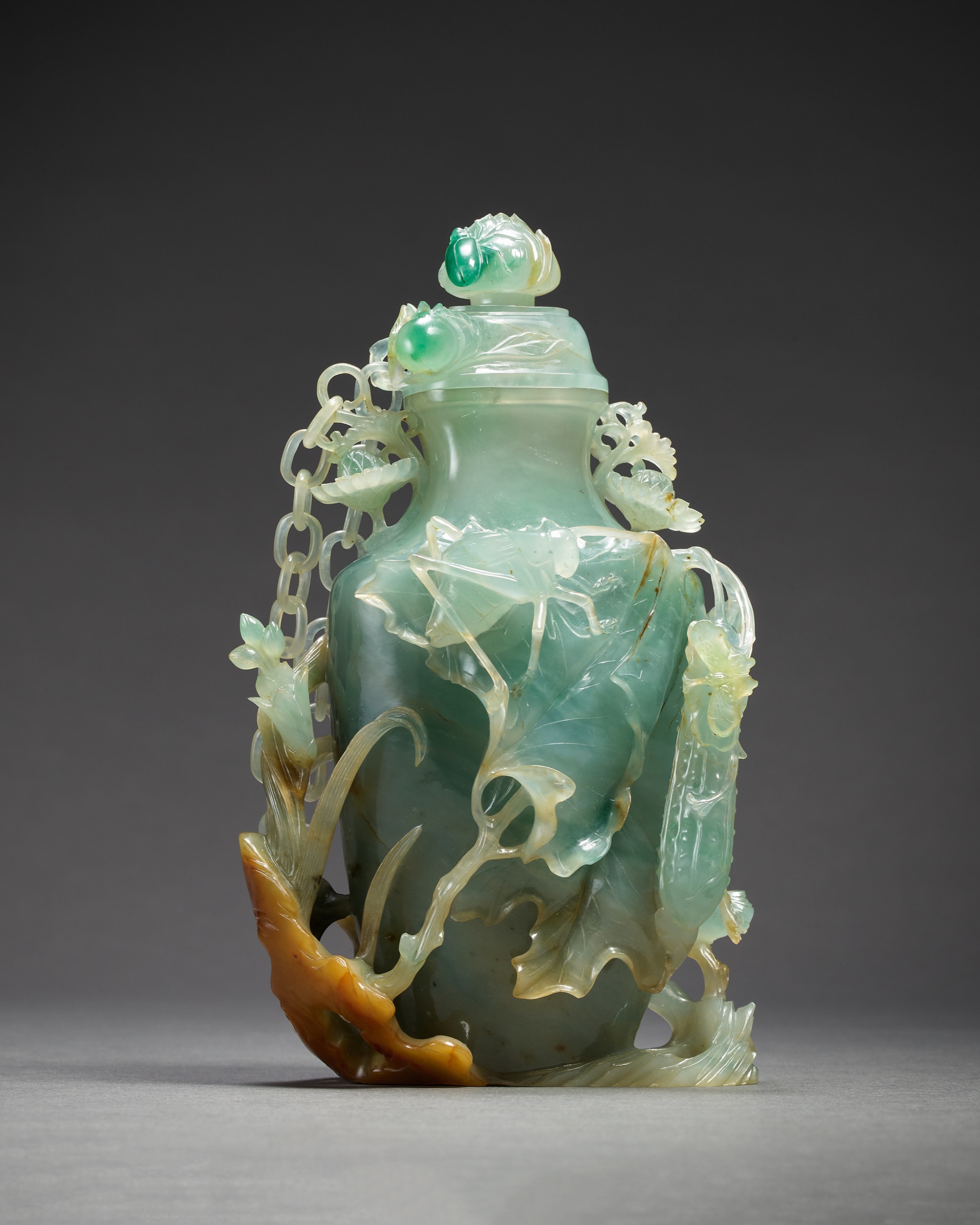 晚清/民國 翡翠「螽斯衍慶」鍊瓶