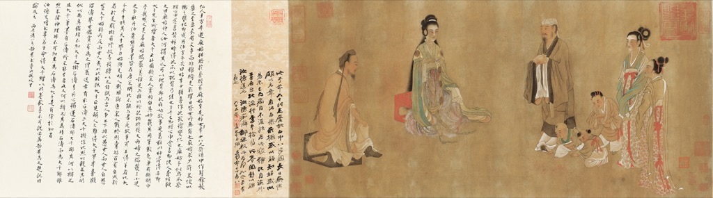 鑑藏印:蕉林收藏(朱),天曆之寶(元天曆內府藏印)、秋碧(葫蘆形印)、蕉林寶玩,石鐘居士、冶溪漁隱(朱文方印,騎縫),秋碧堂、游戲神通、梁清標印、玉立氏、