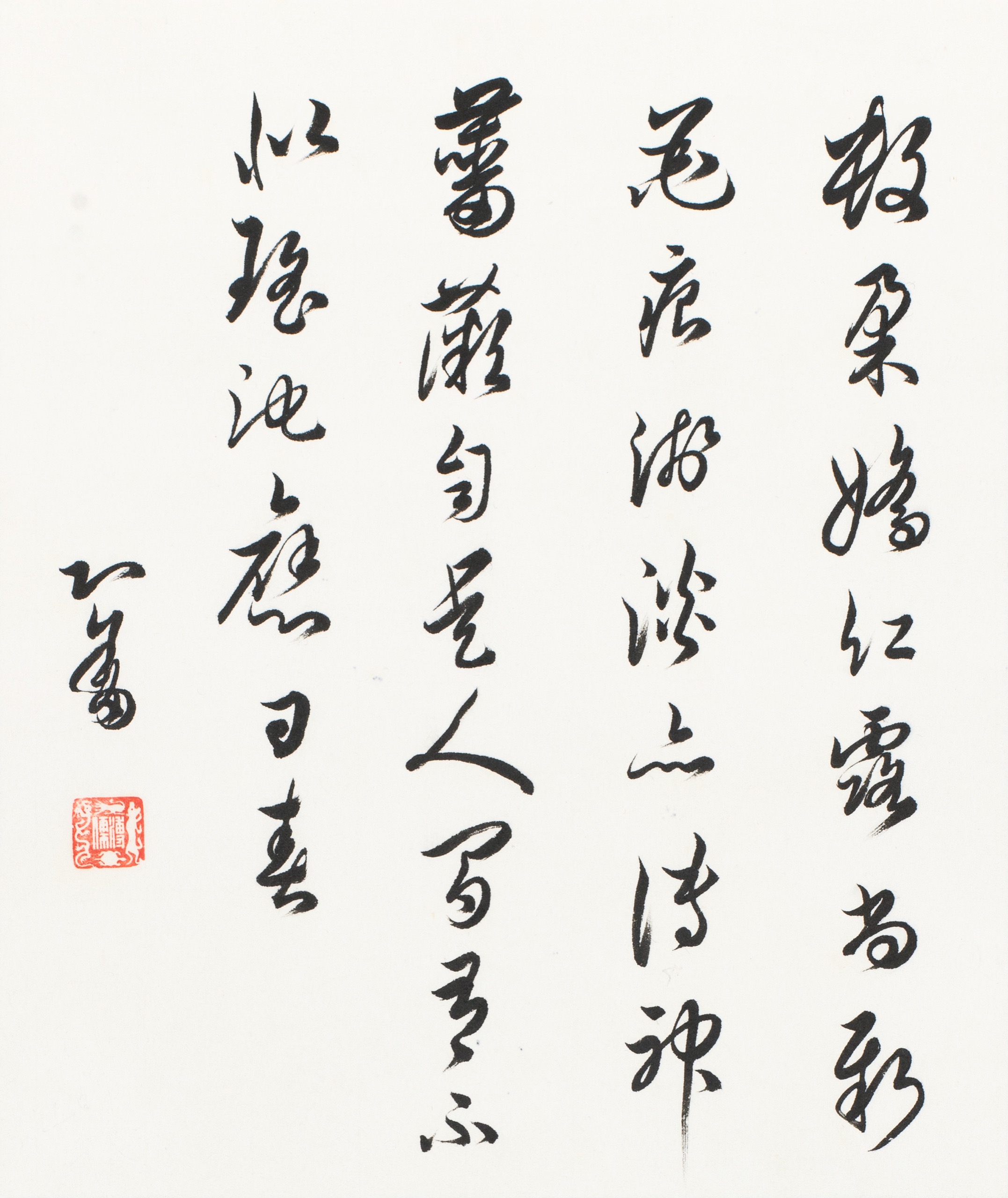 首頁 拍品總覽 2025秋季 share Lot. 3091 溥心畬Pu Hsin-Yu 1896-1963 草書斗方 NT$ 80,000-150,000RMB¥ 16,000-30,000HK$ 20,000-37,500 媒材/尺寸 鏡框 水墨 紙本, 35x29.5cm 款識 數朵嬌紅露尚新,墨痕淺淡亦傳神,藩籬自是人間有,不似瑤池應日春。心畬。 鈐印 溥儒(白)。 來源 出版:《溥心畬先生書畫遺集(下冊)》,臺灣商務印書館,1993年,P.297。 出版/備註 寒玉堂秘藏 登記競投 返回拍品列表 拍品推薦 3231 王文治 書法七言聯 預估價:NT$ 40,000-60,000 2025秋季 3162 吳待秋、鍾剛中 晴峯疊翠/行書 成扇 預估價:NT$ 50,000-80,000 2025秋季 3018 黃耀 英雄得爵 預估價:NT$ 80,000-120,000 2025秋季 3204 汪亞塵 紅荷圖 預估價:NT$ 30,000-50,000 2025秋季 3196 張大千 牡丹 預估價:NT$ 500,000-800,000 2025秋季 3118 于右任 草書《滿江紅》四聯屏 預估價:NT$ 600,000-800,000 2025秋季 3154 溥心畬、溥僩 師龍眠山人筆意雙駿圖/楷書 成扇 預估價:NT$ 120,000-200,000 2025秋季 3227 曾國藩 書法七言聯 預估價:NT$ 400,000-600,000 2025秋季 3033-1 曾國藩 行書七言聯 預估價:NT$ 400,000-600,000 2025秋季 3116 于右任 魏碑蘇游雜詠四屏 預估價:NT$ 1,200,000-1,800,000 2025秋季