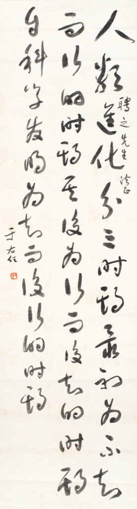 首頁 拍品總覽 2025秋季 share Lot. 3127 于右任Yu You-Ren 1879-1964 書法條幅 NT$ 150,000-250,000RMB¥ 30,000-50,000HK$ 37,500-62,500 媒材/尺寸 立軸 水墨 紙本, 141x38.5cm 款識 人類進化分三時期,錄(初)為不知而行明時期,其後為行而後知的時期,自科學發明為知而後行的時期。聘之先生法正,于右任。 鈐印 右任(朱)。 登記競投 返回拍品列表 拍品推薦 3310 何懷碩 道義同心 預估價:NT$ 15,000-25,000 2025秋季 3335 李行簡 擬杜甫《客至》畫意 預估價:NT$ 50,000-80,000 2025秋季 3144 溥心畬 幽人倚睡夢華胥 預估價:NT$ 300,000-500,000 2025秋季 3284 劉墉 行書條幅 預估價:NT$ 80,000-100,000 2025秋季 3185 顧澐 臨古山水四屏 預估價:NT$ 80,000-120,000 2025秋季 3089 溥心畬 團花行書七言聯 預估價:NT$ 200,000-300,000 2025秋季 3237 譚澤闓 行書七言聯 預估價:NT$ 80,000-150,000 2025秋季 3249 周澄 書法七言聯( 二件一組) 預估價:NT$ 20,000-30,000 2025秋季 3228 左宗棠 書法七言聯 預估價:NT$ 100,000-150,000 2025秋季 3112 溥心畬 書法條幅 預估價:NT$ 80,000-120,000 2025秋季