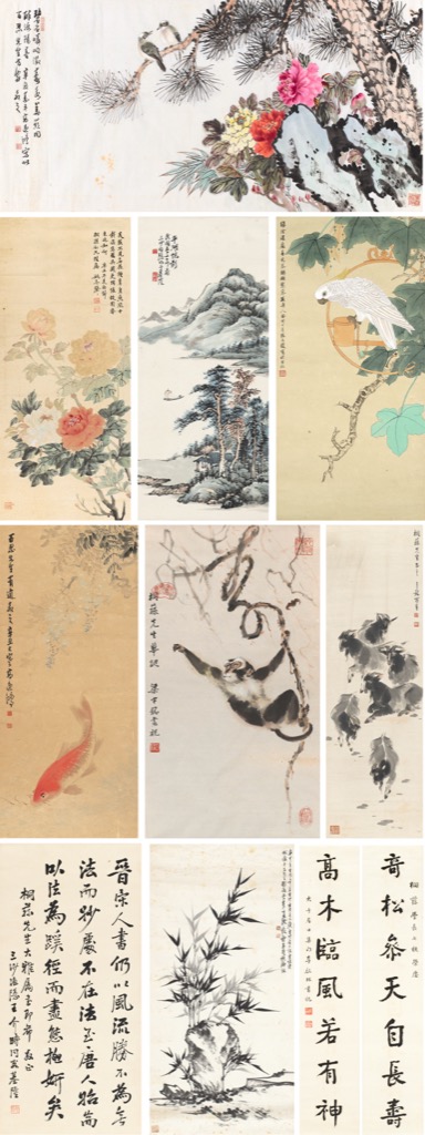 水墨 設色 紙本, (三)68x33cm、52x22cm、(陳)91x46cm、(李)106.5x22.5cm x2、(張) 91x44cm、(姚) 92x40cm、(高)108x48cm、69x138cm、(梁)68x38.5cm、94x29.5cm