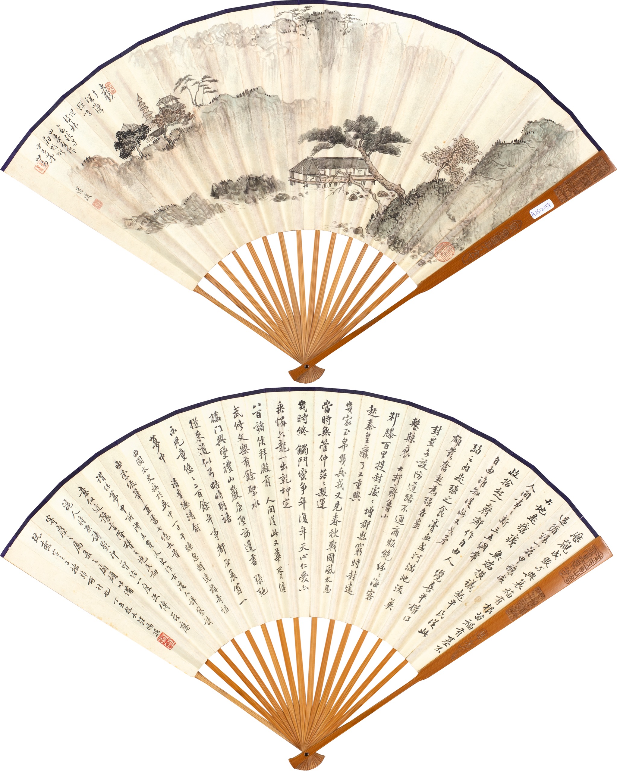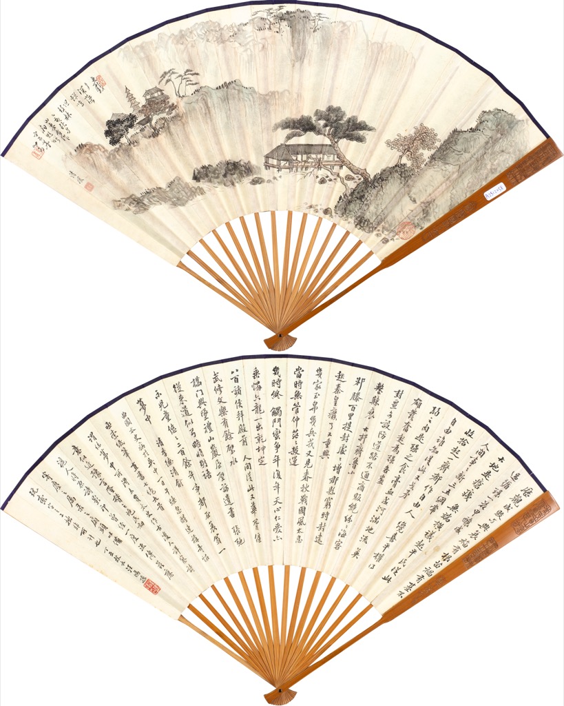 溥儒夫婦合作山水/行書 成扇