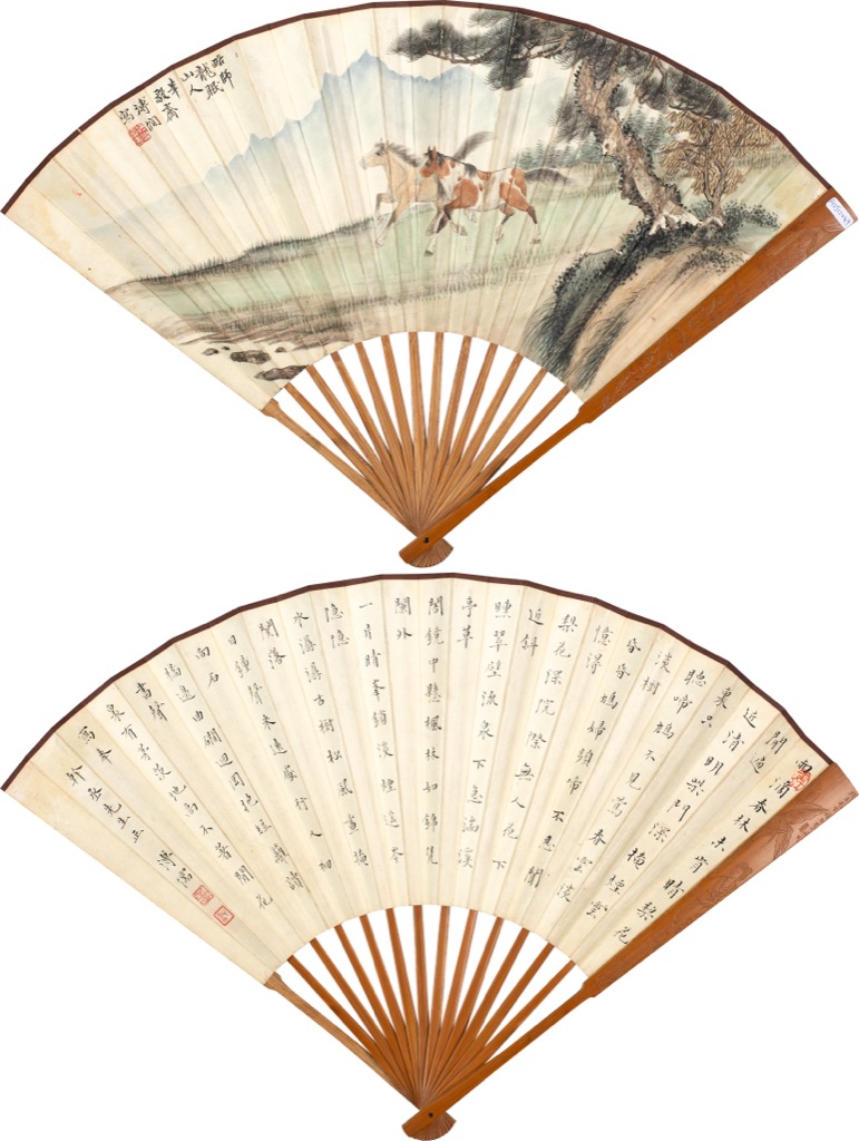 師龍眠山人筆意雙駿圖/楷書 成扇