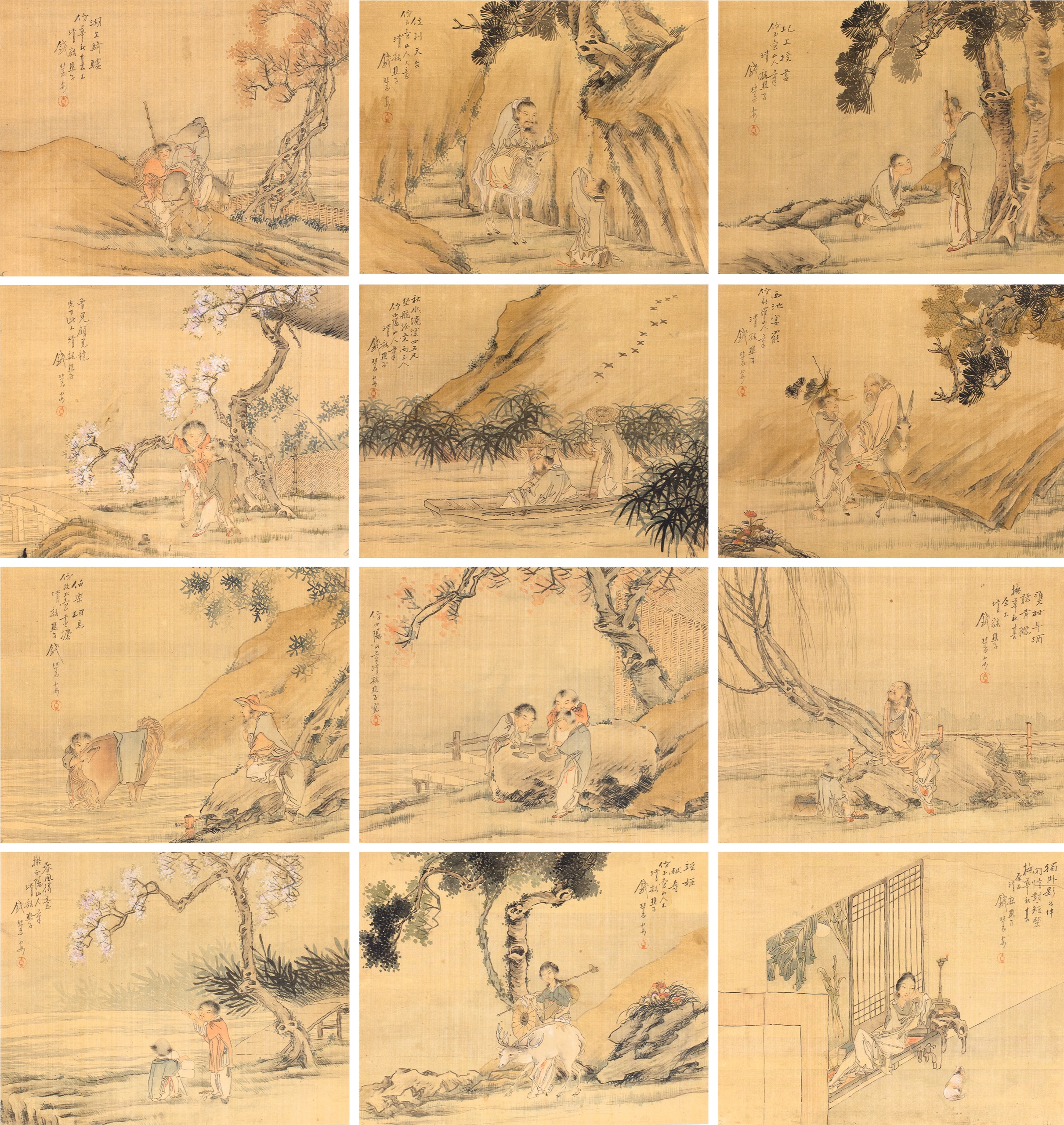 鏡片 設色 絹本, 25.5x32.5cm x12