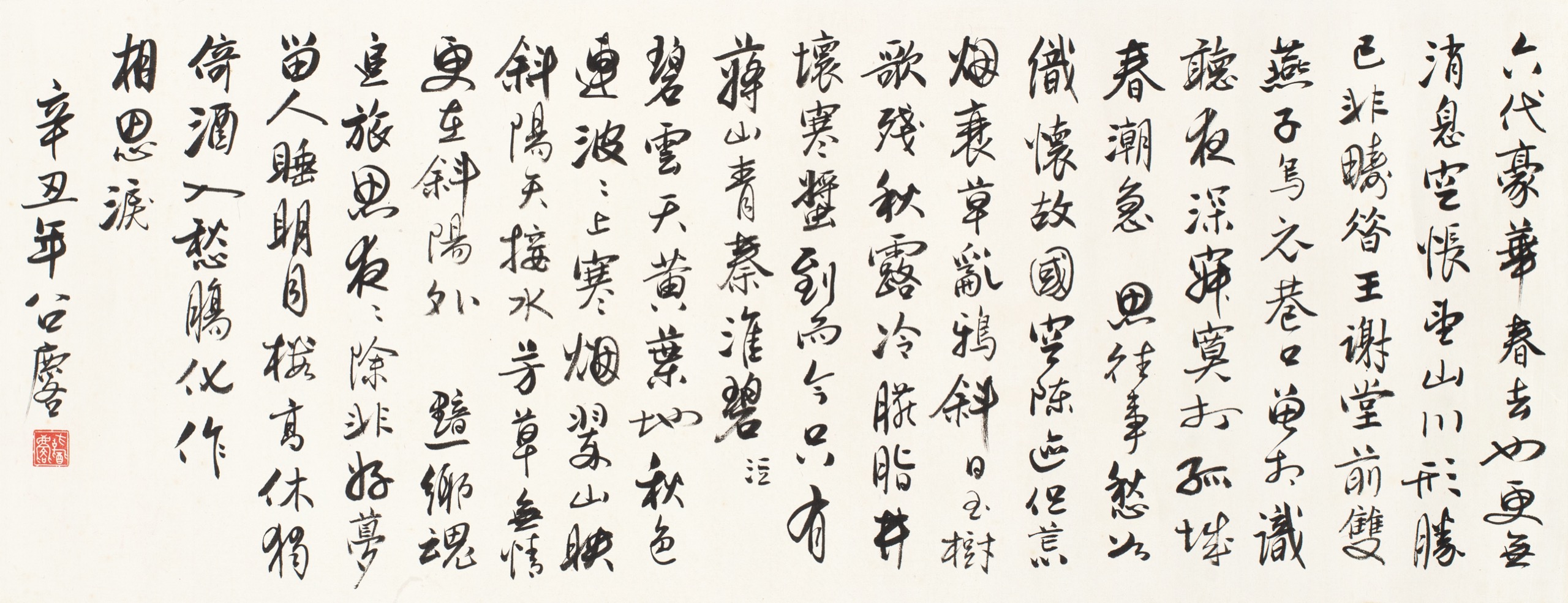 首頁 拍品總覽 2025秋季 share Lot. 3212 方召麐Fang Jau-Jiun 1914-2006 楷書詩詞幾首 年代:1961 NT$ 10,000-20,000RMB¥ 2,000-4,000HK$ 2,500-5,000 媒材/尺寸 鏡片 水墨 紙本, 33.5x88cm 出版/備註 新加坡沈雁教授珍藏 賞析 方召麐,江蘇無錫人。自幼喜習書法,早年於無錫畫院隨陳舊村學習花鳥畫。先後受業於錢松喦、趙少昂、張大千等名家指點,打下紮實且深厚的中國畫基礎。其山水、花鳥、人物、書法等造詣,倍受各界肯定。 登記競投 返回拍品列表 拍品推薦 3311 八大山人 魚群圖 預估價:NT$ 50,000-80,000 2025秋季 3098 溥心畬 朱筆《佛陀說法圖》 預估價:NT$ 1,200,000-2,000,000 2025秋季 3103 溥心畬 松風圖 預估價:NT$ 400,000-600,000 2025秋季 3083 溥心畬 工筆芥藍 預估價:NT$ 1,200,000-2,000,000 2025秋季 3123 于右任 草書五言聯 預估價:NT$ 150,000-300,000 2025秋季 3101 溥心畬 指畫牛 預估價:NT$ 500,000-800,000 2025秋季 3046 徐悲鴻 飛鷹圖 預估價:NT$ 4,000,000-6,000,000 2025秋季 3276 趙松泉 五福長樂圖、布穀鳥(二件一組) 預估價:NT$ 20,000-30,000 2025秋季 3148 南懷瑾 行書《楞嚴經》偈語 預估價:NT$ 150,000-250,000 2025秋季 3288 陳半丁 杞菊延年圖 預估價:NT$ 50,000-80,000 2025秋季