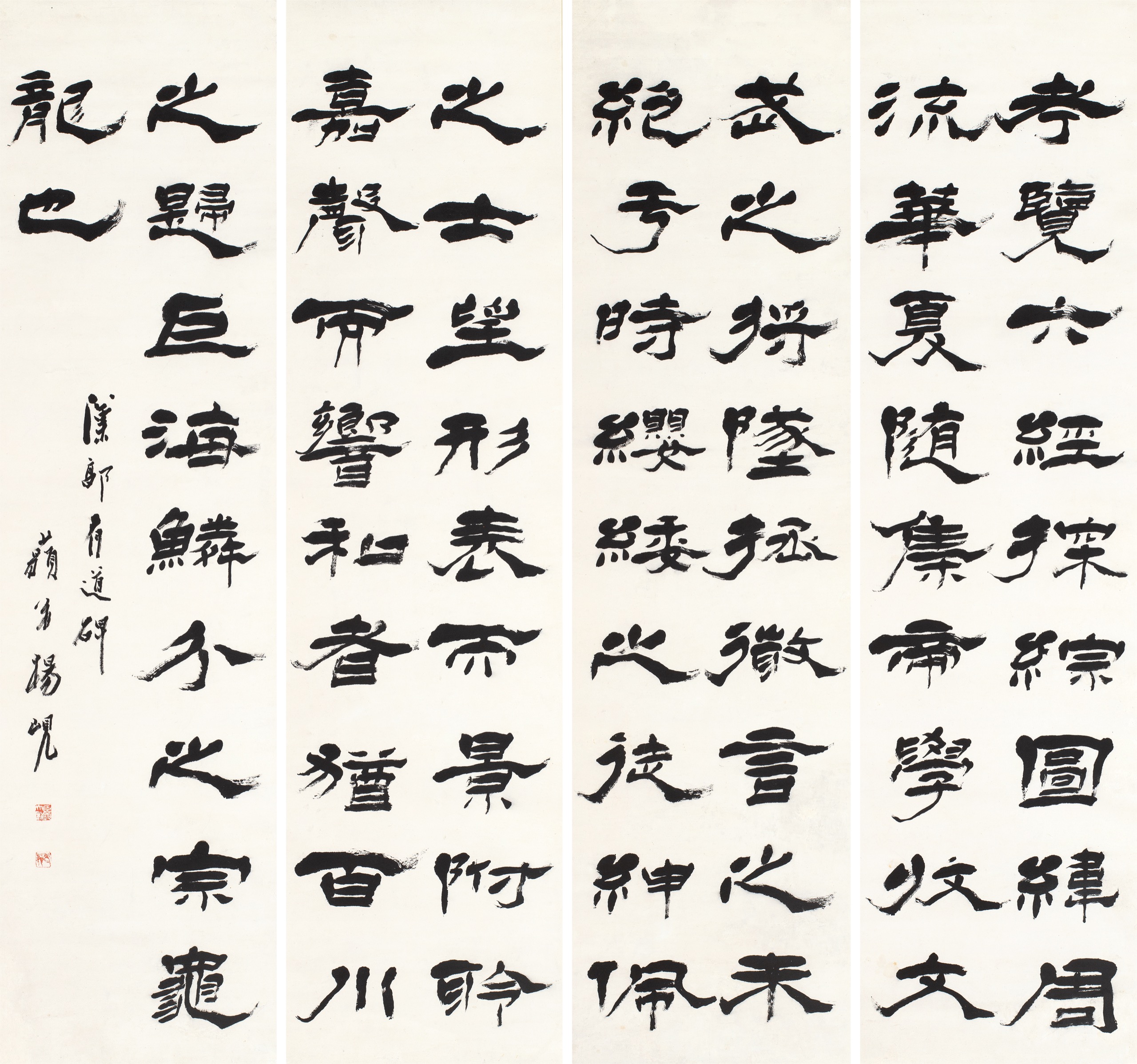 首頁 拍品總覽 2025秋季 share Lot. 3224 楊峴Yang Hsien 1819-1896 《郭有道碑文》四屏 NT$ 60,000-80,000RMB¥ 12,000-16,000HK$ 15,000-20,000 媒材/尺寸 立軸 水墨 紙本, 149x36.9cm x4 款識 考覽六經,探綜圖緯。周流華夏,隨集帝學。收文武之將墜,拯微言之未絕。于時纓緌之徒,紳佩之士,望形表而景附,聆嘉聲而響和者,猶百川之歸巨海,鱗介之宗龜龍也。漢郭有道碑,藐翁楊峴。 鈐印 臣顯大利(白)、老藐(朱)。 登記競投 返回拍品列表 拍品推薦 3023 楊蘭森 安居圖 預估價:NT$ 20,000-30,000 2025秋季 3311 八大山人 魚群圖 預估價:NT$ 50,000-80,000 2025秋季 3276 趙松泉 五福長樂圖、布穀鳥(二件一組) 預估價:NT$ 20,000-30,000 2025秋季 3021 吳讓之 竹石 預估價:NT$ 80,000-120,000 2025秋季 3204 汪亞塵 紅荷圖 預估價:NT$ 30,000-50,000 2025秋季 3264 曾紹杰 書法大中堂 預估價:NT$ 30,000-50,000 2025秋季 3262 彭醇士 五言律詩七首 預估價:NT$ 200,000-300,000 2025秋季 3304 佛法儀式文獻卷(二件一組) 預估價:NT$ 100,000-150,000 2025秋季 3026 陳獨秀 行書杜甫詩二首 預估價:NT$ 5,000,000-8,000,000 2025秋季 3197 張大千(跋)、沈雁(畫) 南洋花卉圖卷 預估價:NT$ 200,000-300,000 2025秋季