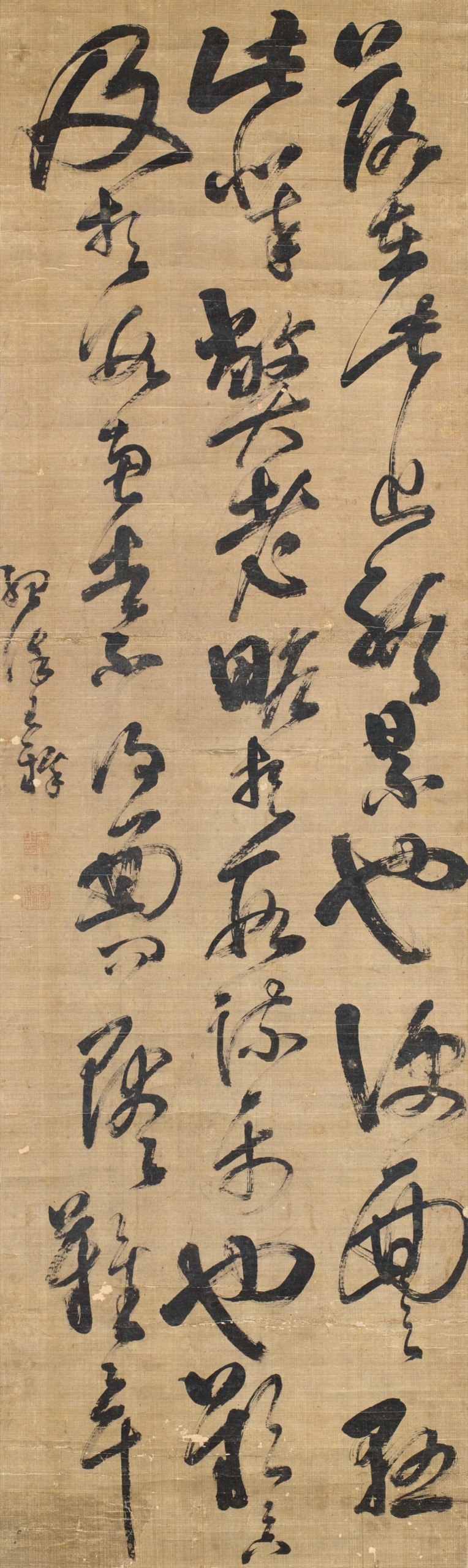 首頁 拍品總覽 2025秋季 share Lot. 3240 王鐸Wang Duo 1592-1652 草書大條幅 NT$ 50,000-80,000RMB¥ 10,000-16,000HK$ 12,500-20,000 媒材/尺寸 立軸 水墨 絹本, 152x45cm 款識 落在此止新景也□面之□此似奉敞大老略於□樂也及於數者長不後面 難年。 鈐印 王鐸之印(白)、覺斯(朱)。 登記競投 返回拍品列表 拍品推薦 3076 楚戈 外雙溪寫意 預估價:NT$ 20,000-30,000 2025秋季 3094 張大千、張群(題) 峨嵋三頂圖、簽名冊頁(17開) 預估價:NT$ 850,000-1,200,000 2025秋季 3159 劉伯年、呂克昌 騎驢過小橋/楷書正氣歌 成扇 預估價:NT$ 80,000-120,000 2025秋季 3039 吳昌碩 澗泉行吟圖 預估價:NT$ 2,500,000-4,000,000 2025秋季 3221 沈雁、馮璧池 松林高士 預估價:NT$ 10,000-30,000 2025秋季 3032 虛谷 桃實八哥圖 預估價:NT$ 600,000-1,200,000 2025秋季 3319 鄭曼青 大年魚圖 預估價:NT$ 60,000-100,000 2025秋季 3138 于右任、錢思亮、梁寒操、積寬 書法(四件一組) 預估價:NT$ 30,000-50,000 2025秋季 3047 黃賓虹 園林秋色圖 預估價:NT$ 600,000-1,200,000 2025秋季 3090 溥心畬 團花行書七言聯 預估價:NT$ 200,000-300,000 2025秋季