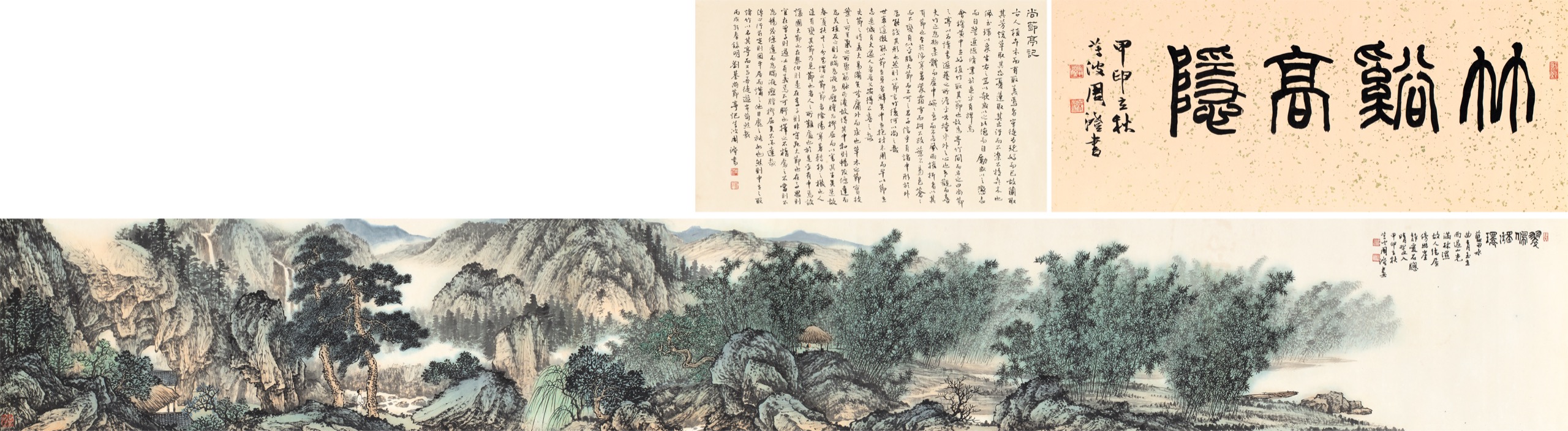 手卷 設色 紙本, (引首)43x104cm、(後跋)43x316cm、(畫)43x63.5cm