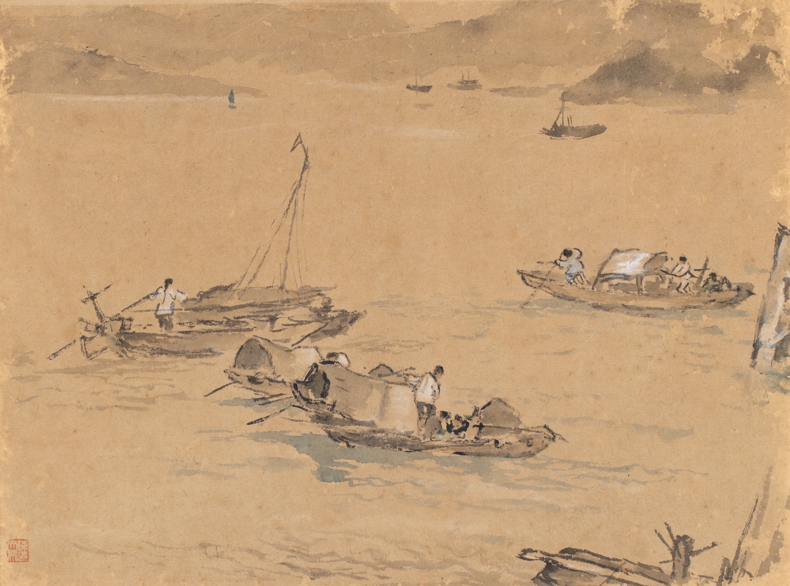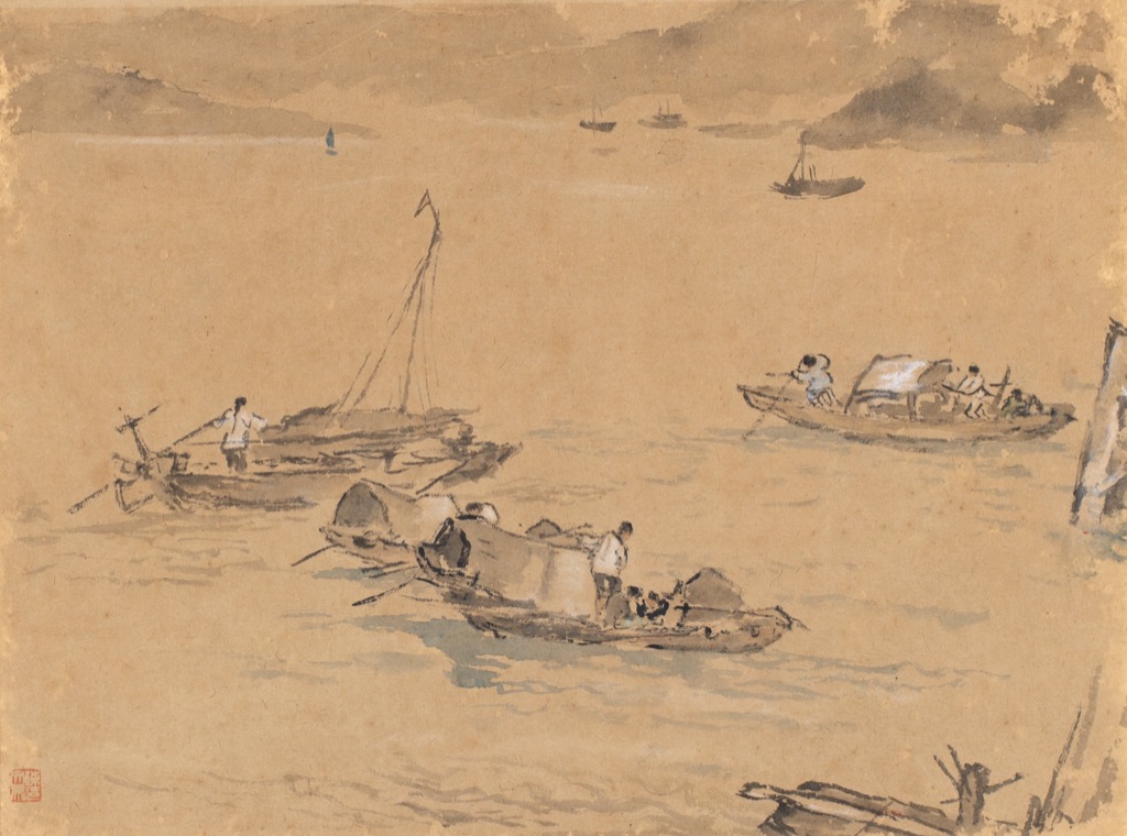 陳文希,廣東揭陽人。自小對美術創作興趣濃厚。1920 年代,不顧家人反對,於汕頭完成中學教育的陳文希,毅然離鄉前往上海美術專科學校專攻美術,後因故轉校新華藝術專科學校,受教於潘天壽等名師。陳文希以獨特的中西結合的畫風,奠定其國際藝壇上的基礎,是新加坡20 世紀舉足輕重的現代藝術家。附圖為藏家裱框時,特意留下的陳文希簽名與鈐印。鈐印「白宮(白)」即陳文希的出生地廣東汕頭白宮村。