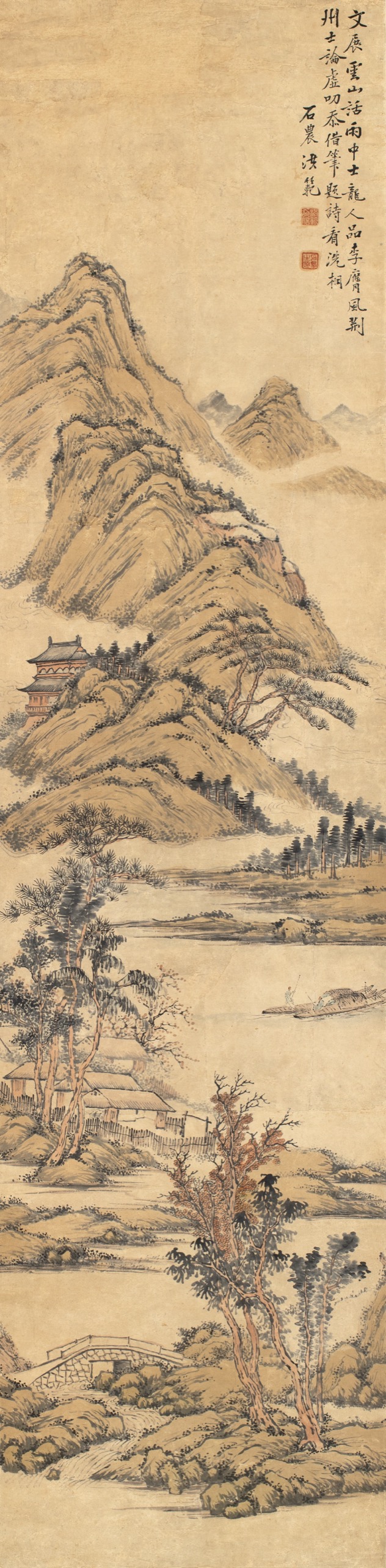 洪範,字石農。安徽休寧人,一作歙縣人。官至沂曹道。其繪畫以山水、墨竹見長,山水宗法黃公望,墨竹師承蘇東坡,風格瀟灑飛逸,間作小景亦別具意趣。作為新安畫派後期代表人物之一,其作品體現了該畫派枯淡幽冷的藝術特色。2021年北京故宮博物院對其代表作《洪範竹石圖》進行修復,體現院方對其作品之重視。
