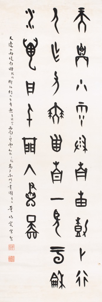 首頁 拍品總覽 2025秋季 share Lot. 3353 董作賓Dong Zuo-Bin 1895-1963 甲骨文寫契文集古詩 NT$ 30,000-50,000RMB¥ 6,000-10,000HK$ 7,500-12,500 媒材/尺寸 立軸 水墨 紙本, 101x34cm 款識 天邊小雨侵南圃(張汯),樹外行人乍有無(朱繼芳)。西南一望雲和水(王翰),萬戶千門入畫圖(李白)。董作賓寫絜。 鈐印 董作賓(朱)、彥堂長壽(白)。 來源 隨拍品附贈甲骨文專書一本 登記競投 返回拍品列表 拍品推薦 3092 張大千 行書七言聯 預估價:NT$ 500,000-800,000 2025秋季 3353 董作賓 甲骨文寫契文集古詩 預估價:NT$ 30,000-50,000 2025秋季 3012 吳大澂 漢制舉賢帖篆書四屏 預估價:NT$ 250,000-350,000 2025秋季 3212 方召麐 楷書詩詞幾首 預估價:NT$ 10,000-20,000 2025秋季 3046 徐悲鴻 飛鷹圖 預估價:NT$ 4,000,000-6,000,000 2025秋季 3079 清 翡翠滿綠冰種手鐲 預估價:NT$ 600,000-1,200,000 2025秋季 3266 于右任 草書《山谷內集詩注》 預估價:NT$ 100,000-150,000 2025秋季 3035 張大千、鄭曼青、劉延濤 《三髯四君子》手卷 預估價:NT$ 1,200,000-2,000,000 2025秋季 3342 程大利 桃園三結義 預估價:NT$ 5,000-15,000 2025秋季 3192 倪墨畊 紫綬金章 預估價:NT$ 30,000-50,000 2025秋季