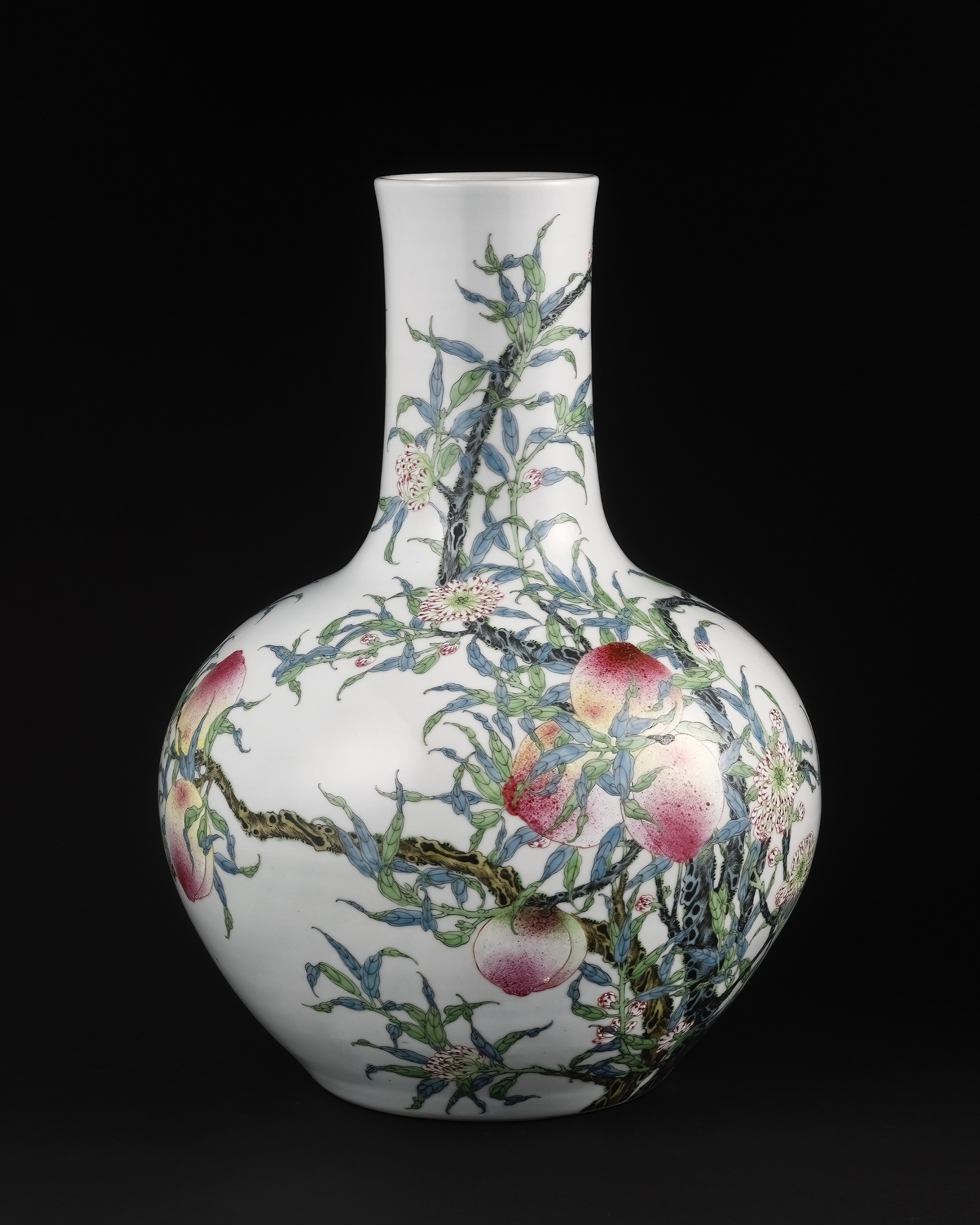 民國 粉彩九桃天球瓶