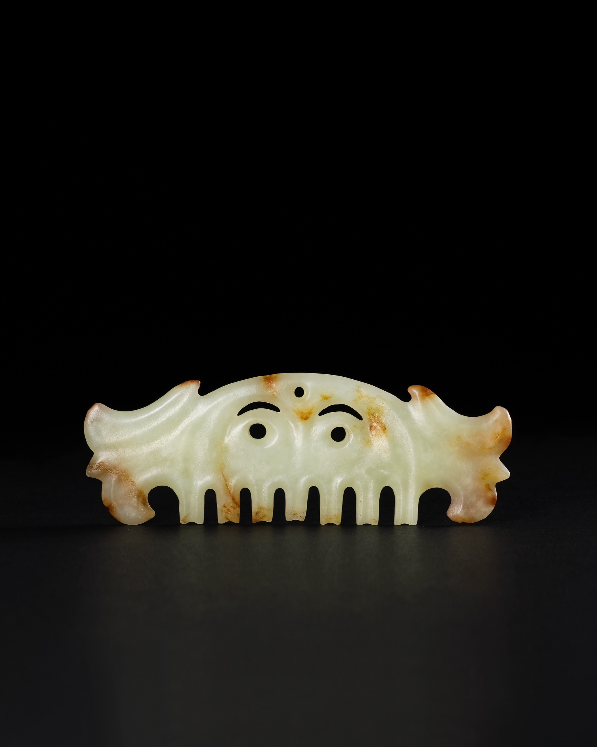 紅山文化 青黃玉勾雲齒形獸面紋珮