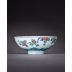 此件清康熙鬥彩碗,撇口弧腹,圈足修挺,器形清朗秀整。胎體緻密細膩,釉質光潔明潤,晶瑩澄澈之中,映出瓷胎內斂之光澤。碗身外壁以鬥彩繪飾「落花流水」主題,構圖流暢,筆意生動,蘊含深遠詩意。