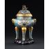 清中期 掐絲琺瑯饕餮紋首足獅鈕蓋爐