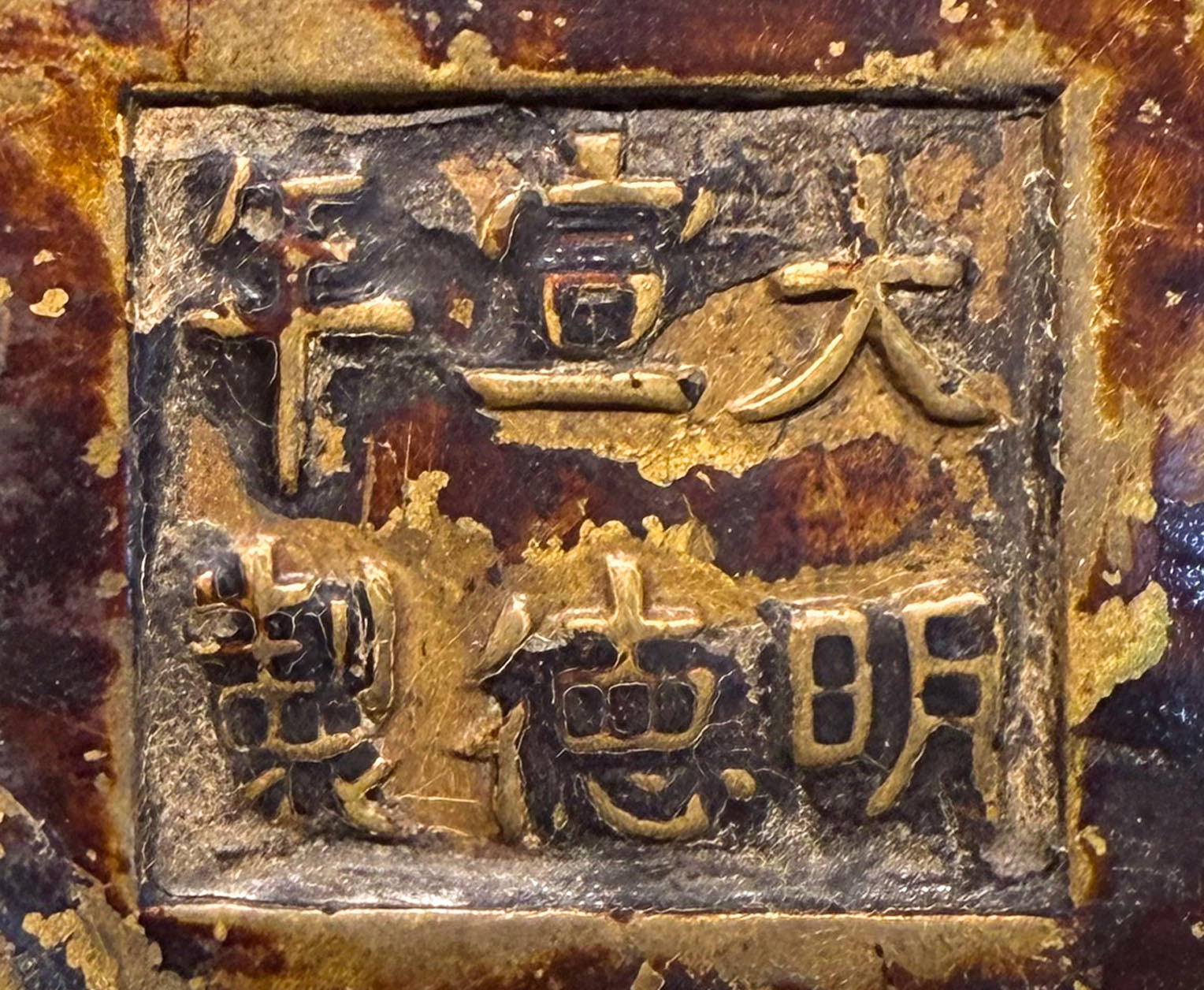 內腔可見環狀跳刀紋,為古法整飾爐堂時所遺旋削痕,節奏感明晰,具斷代參考價值。底部三足之間陰刻「大明宣德年製」雙行六字楷書款,筆畫端整沉穩,字勢謹嚴,承宣德範式,與器形風格相得益彰。