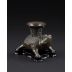 這件清代銅雕三足金蟾水滴,形制別緻,造型取自傳說中能吐金納財的「金蟾」。器身作蹲伏狀,雙目圓睜,口微張,背部及四肢肌肉飽滿,三足踏地,足下指爪分明,氣勢矯健生動,整體神態靈巧富有靈氣。