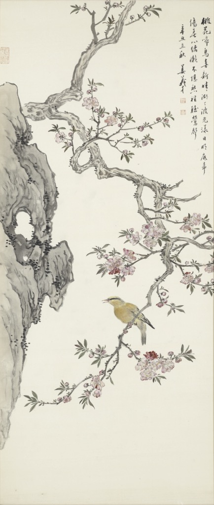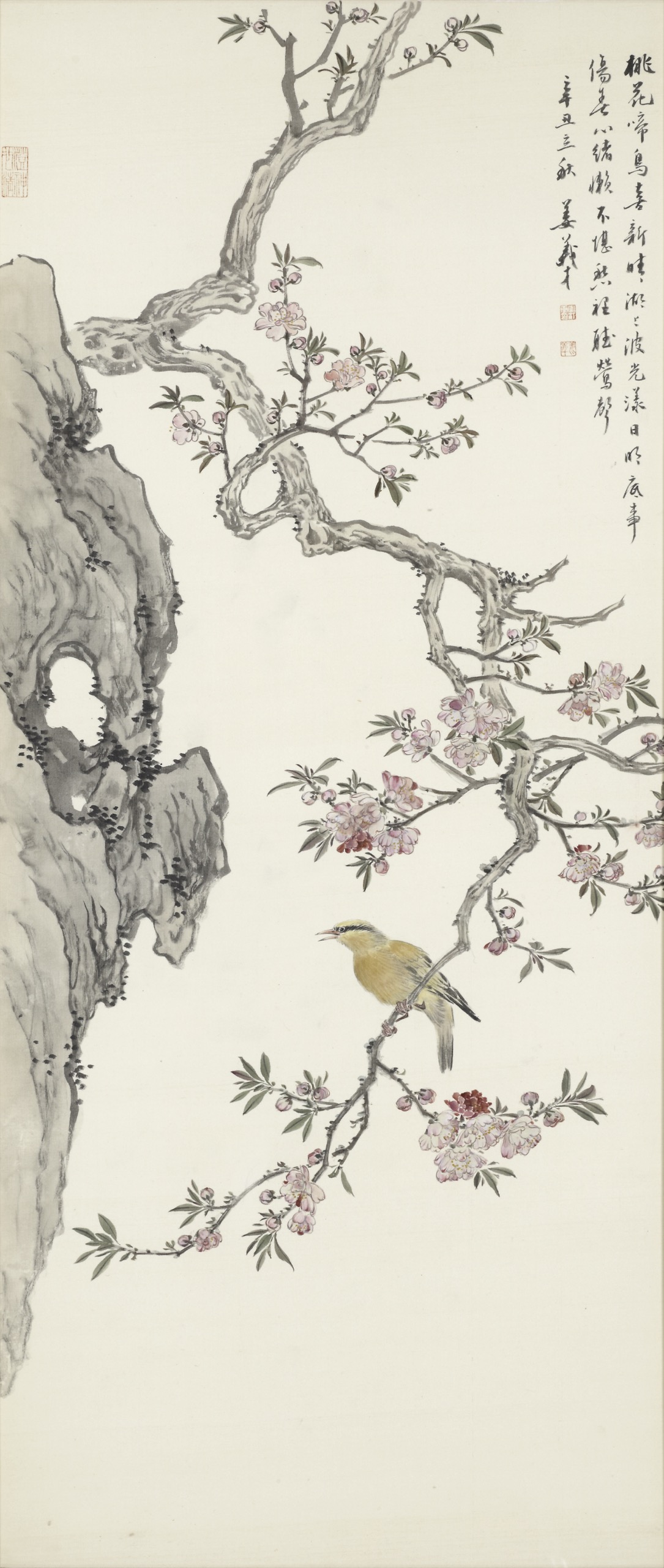 桃花啼鳥喜新晴,湖上波光漾日明,底事傷春心緒懶,不堪愁裡聽鶯聲。辛丑立秋,姜義才。