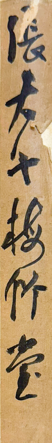此軸由大千滬上藝友謝稚柳題簽「張大千梅竹堂」,既點明題材,亦暗示此作或曾為謝氏鑒藏,增添藝壇名家遞藏之軼事。