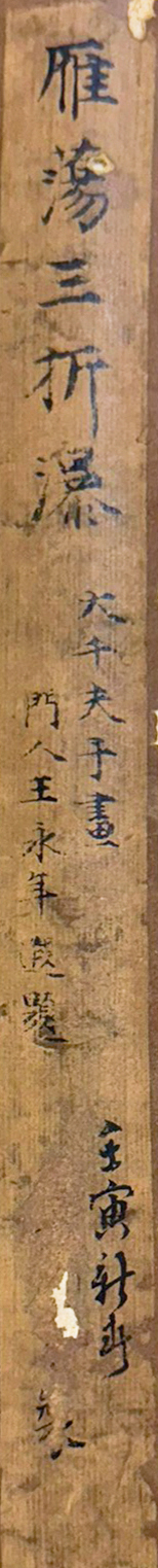 題籤:雁蕩三折瀑,大千夫子畫,門人王永年 遐題。壬寅新春 ○裝。 -