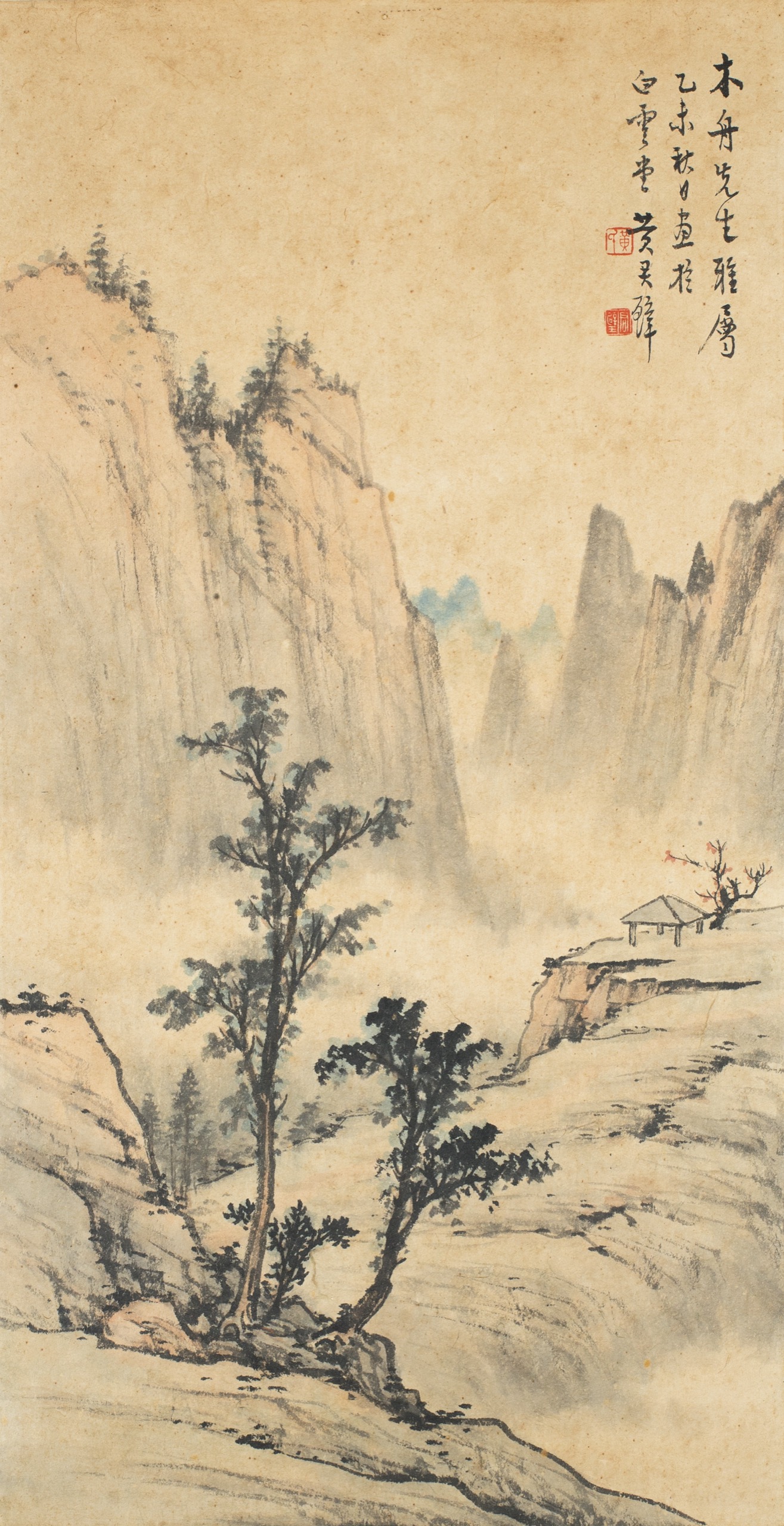 木舟先生雅屬。乙未秋日畫於白雲堂,黃君璧。