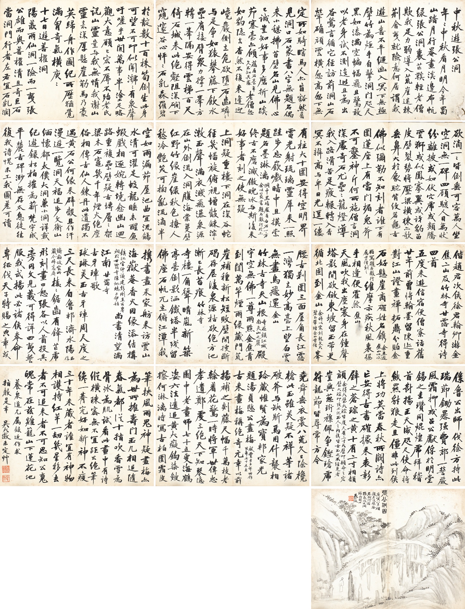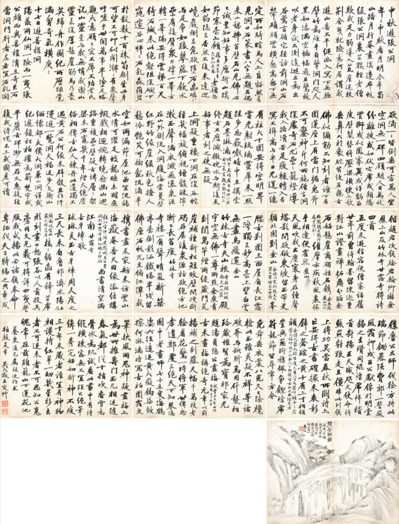 冊頁 水墨、設色 紙本, 23x29.5cm x16