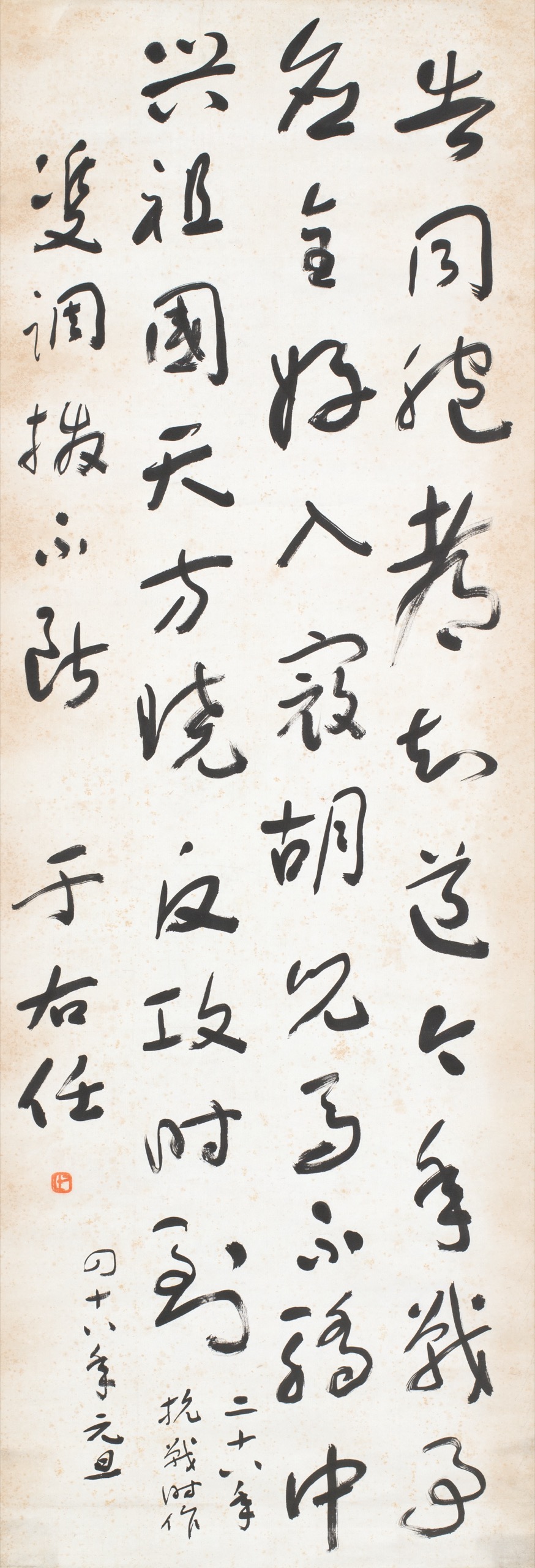 曉,反攻時到。雙調撥不斷。二十八年抗戰時作,于右任,四十八年元旦。 -