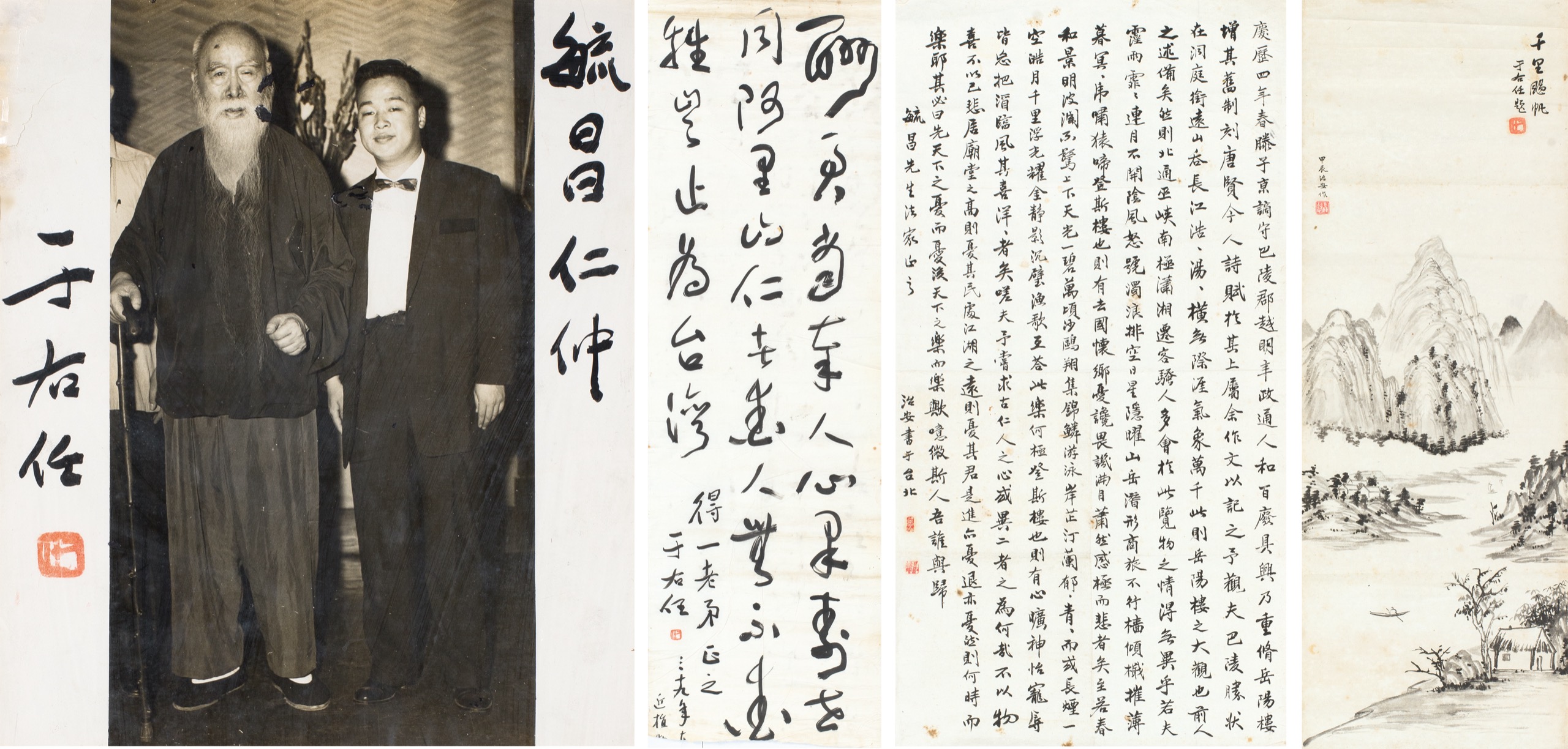 草書(有損)(趙得一上款)、簽名照(趙毓昌上款)、聶治安書、聶治安畫(四件一組)
