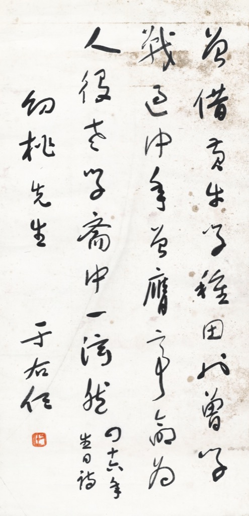 曾借黃牛學種田,也曾學戰過中年。曾膺帝命為人役,老學齋中一泫然。四十六年生日詩。幼桃先生,于右任。