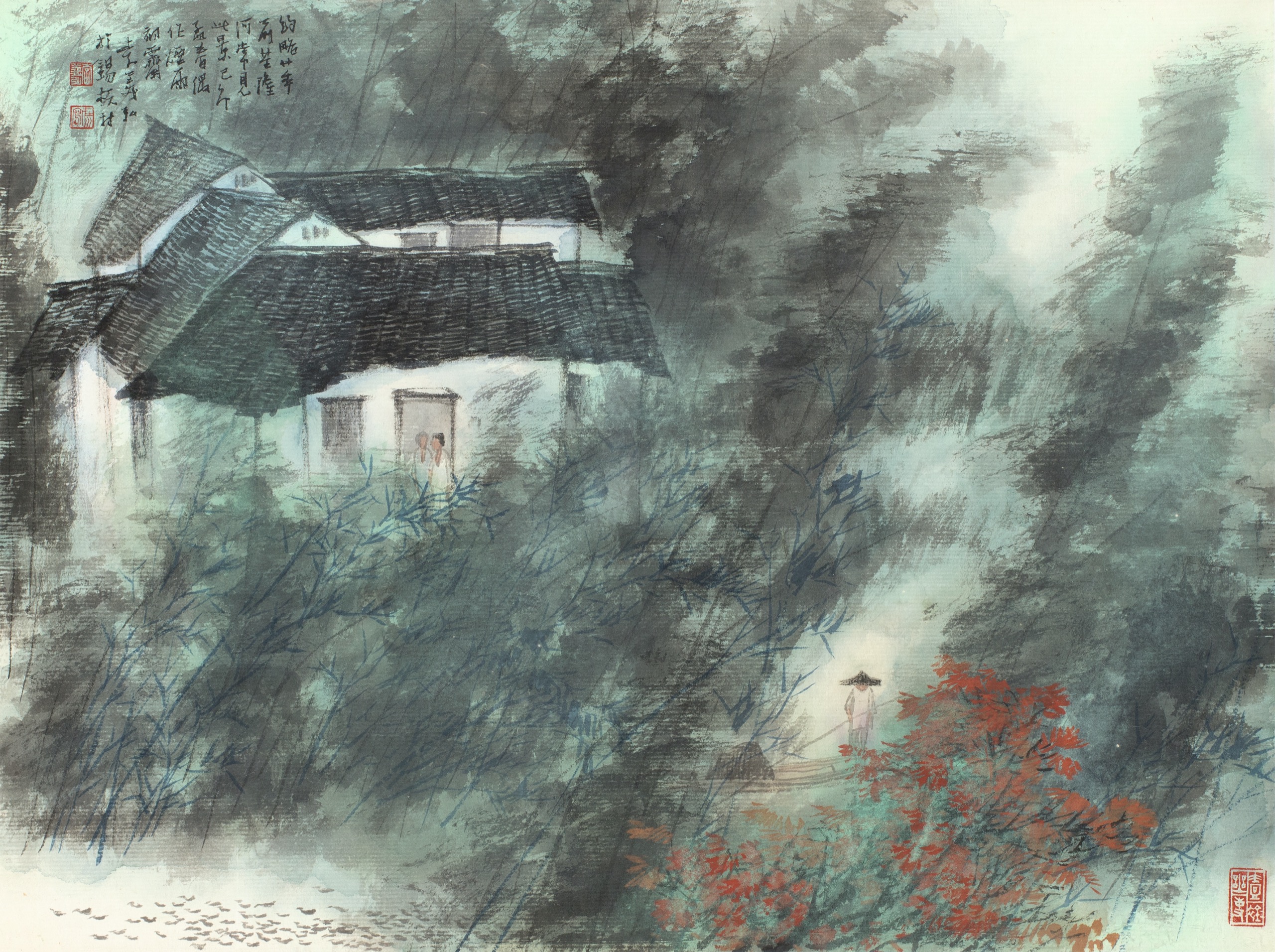 約略廿年前基隆河常見此景。己卯孟春作煙雨初霽,李義弘於錫板村。