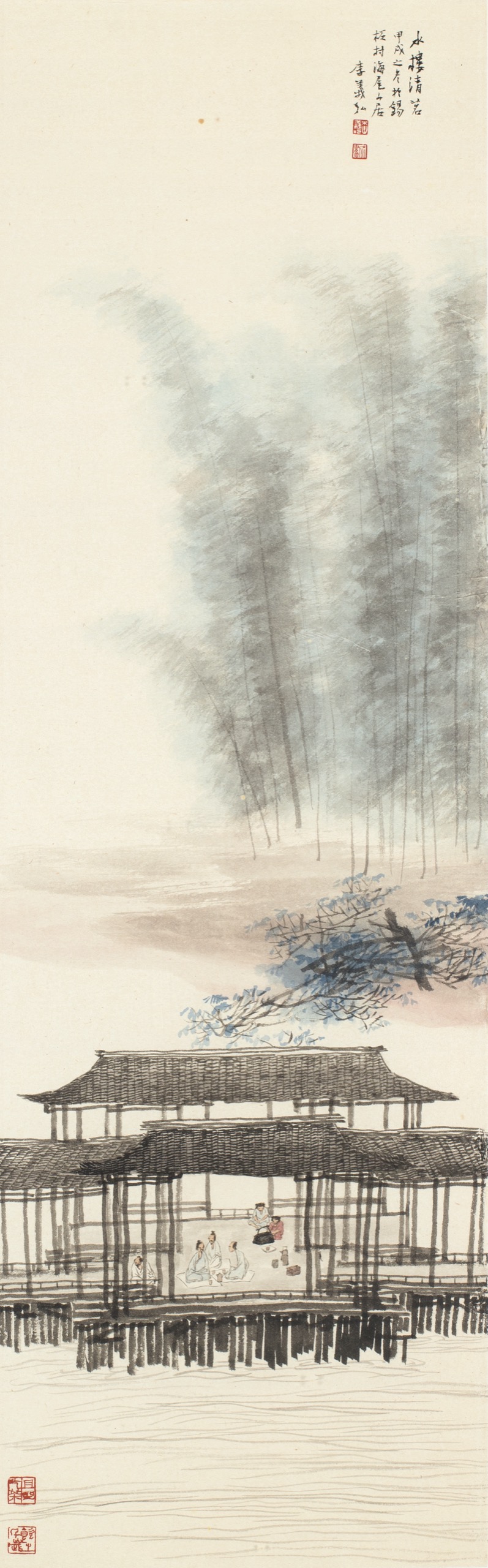 水樓清茗。甲戌之冬於錫板村海尾山居,李義弘。