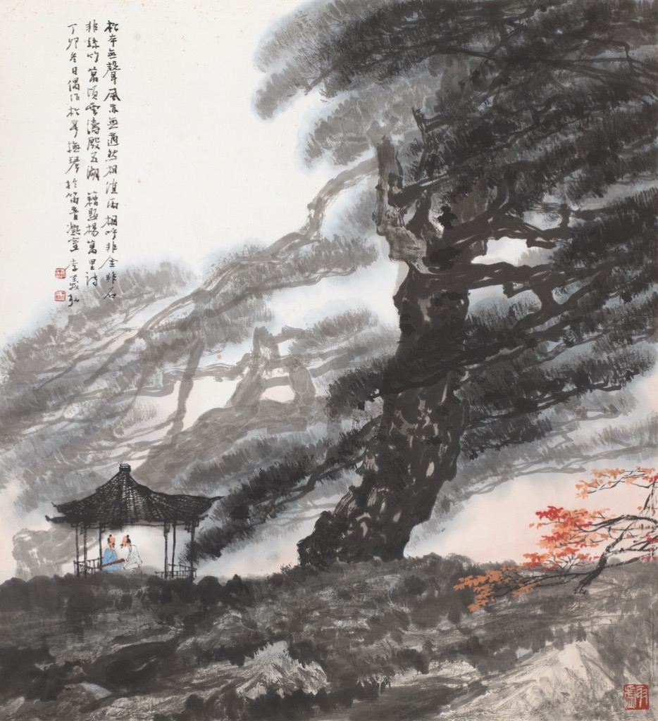 松本無聲風亦無,適然相值兩相呼。非金非石非絲竹,萬頃雲濤殷五湖。藉題楊萬里詩,丁卯冬日偶作於亭撫琴於笛音凝室,李義弘。