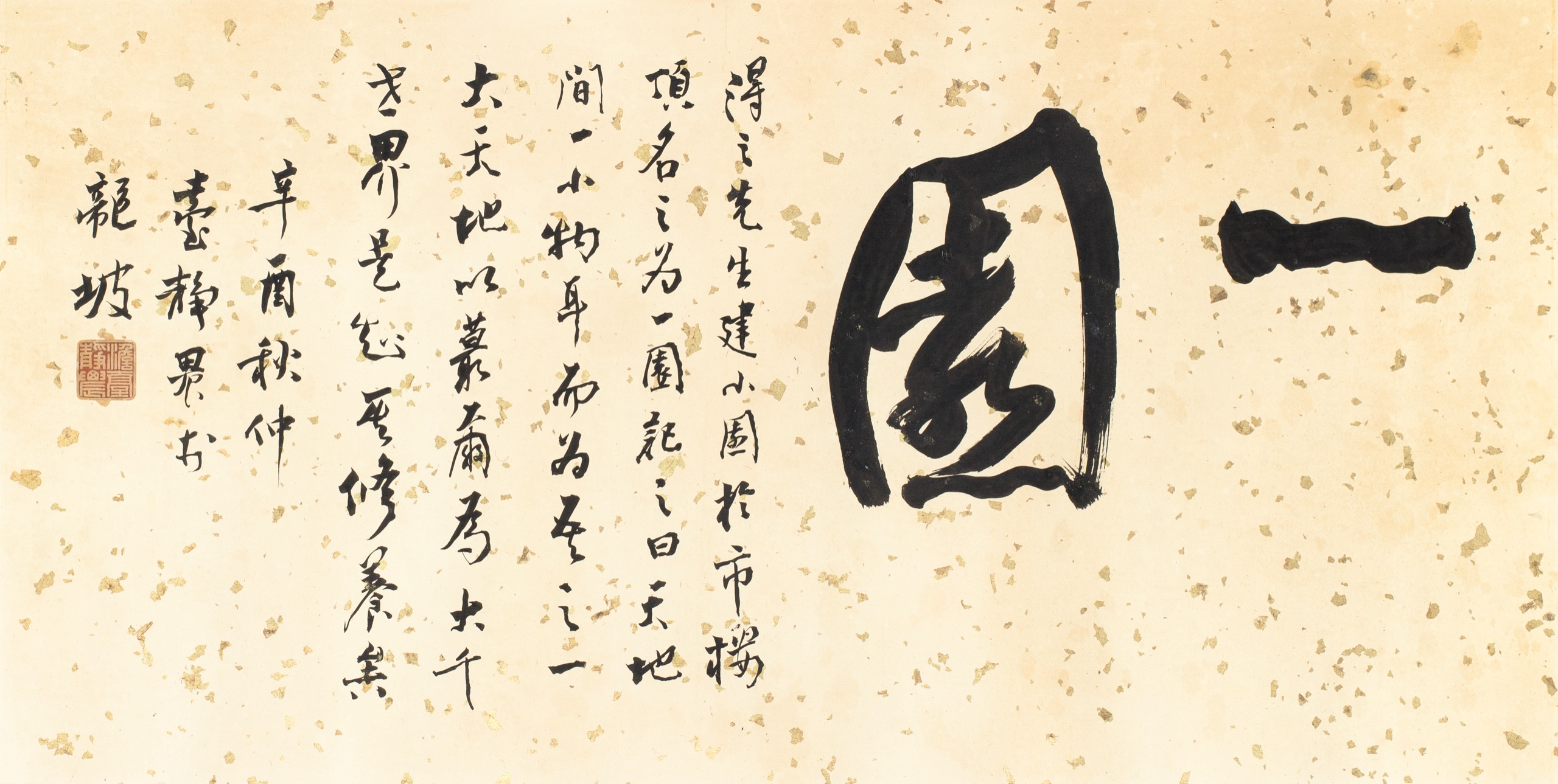 一園。得之先生建小園於市,樓頂名為一園,記之曰天地間一小物耳,而為吾之一大天地以錄爾。為大千世界是知其修養矣。辛酉秋仲臺靜農於龍坡。