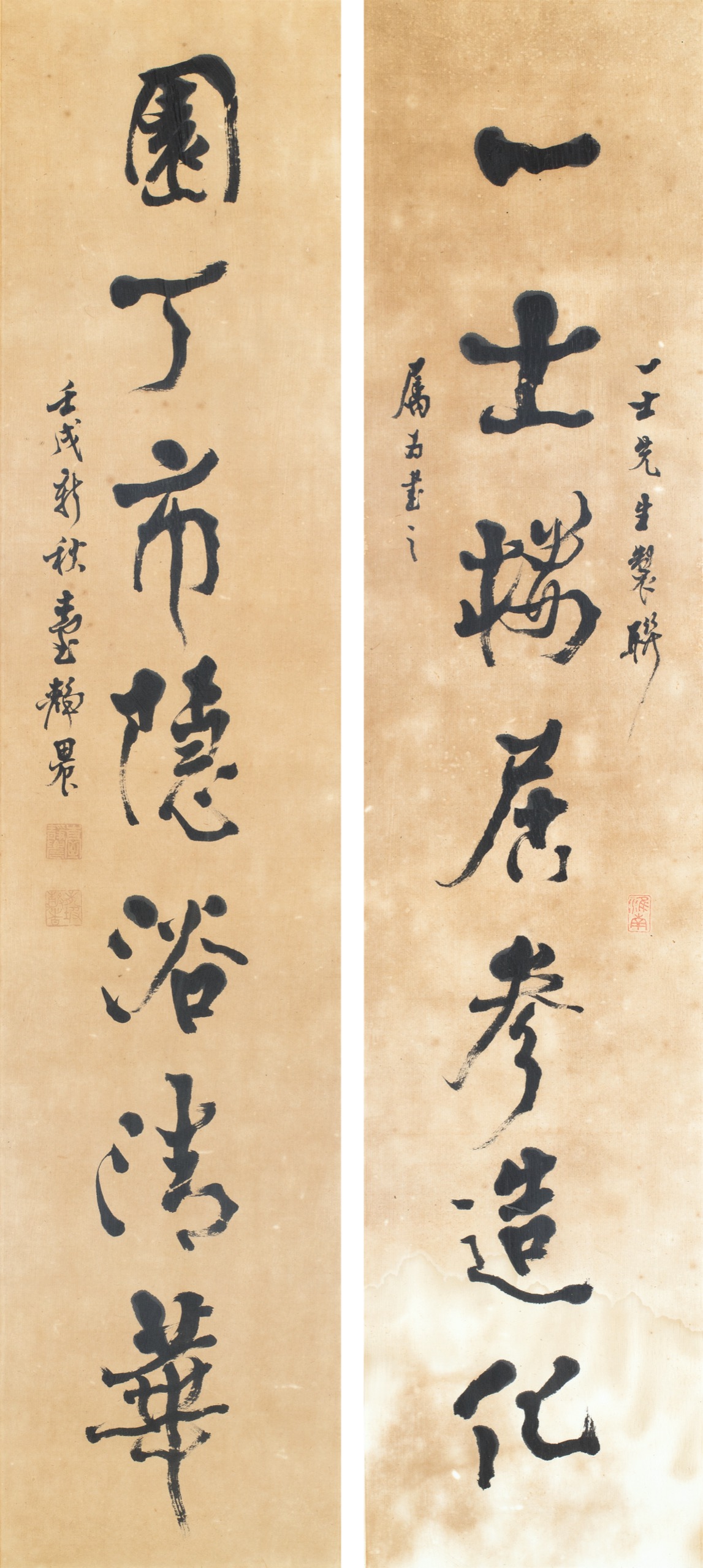 一士樓居參造化,園丁市隱浴法華。一士先生製聯,屬為書之,壬戌新秋臺靜農。
