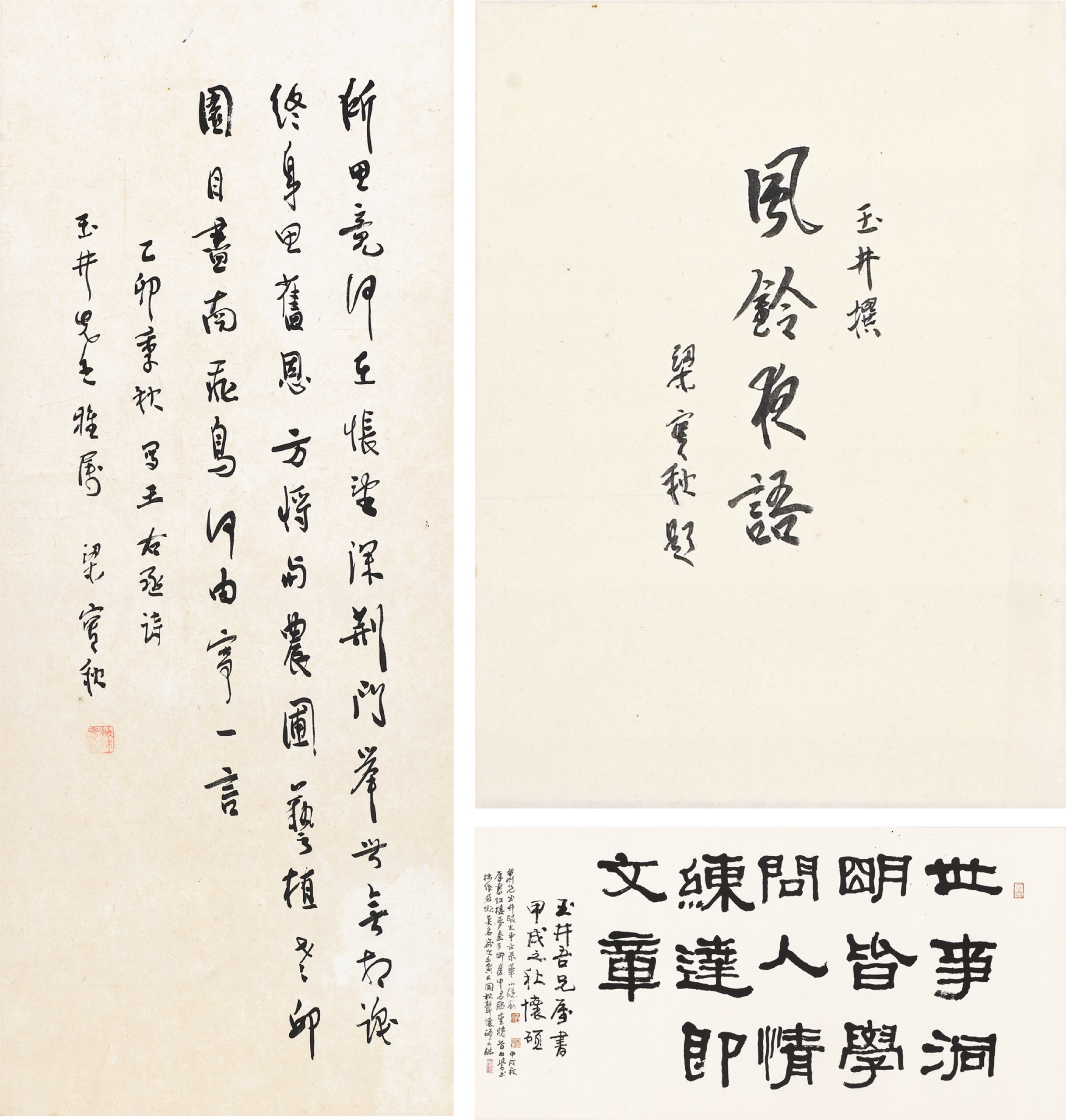 錄王右丞詩、題書名「風鈴夜語」、錄紅樓夢聯句(三件一組)