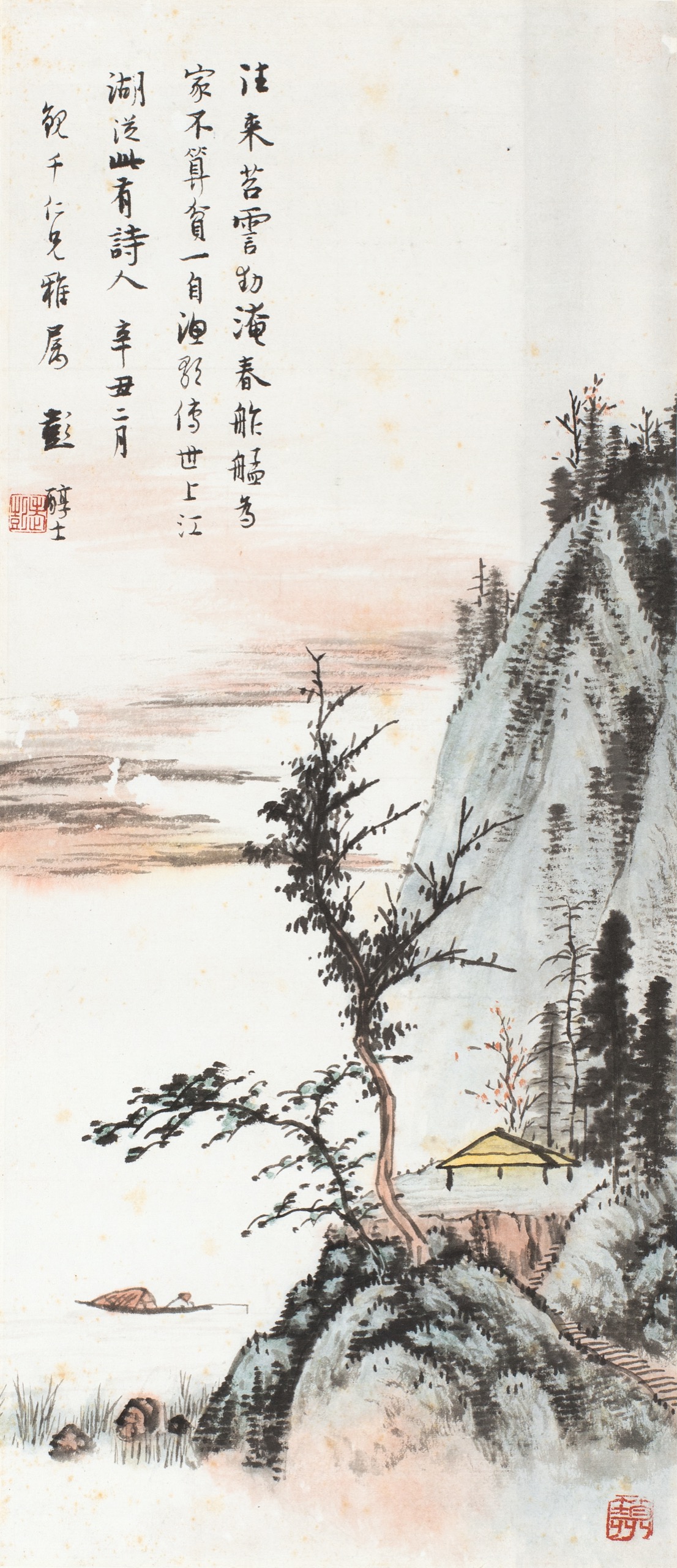 往來苕霅動淹春,舴艋為家不算貧。一自漁歌傳世上,江湖從此有詩人。辛丑二月觀千仁兄雅屬,彭醇士。