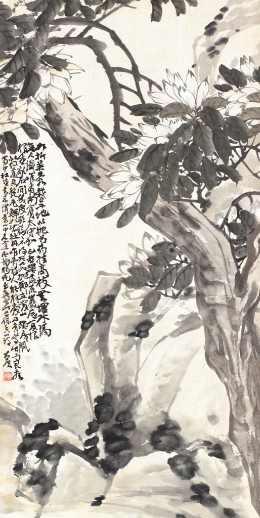 如折芙蓉栽旱地,似拋芍藥挂高枝。雲埋水隔無人識,唯有南賓太守知。已愁華落荒巖底,復恨根生亂石間。幾度欲移移不得,天教拋擲在深山。華房膩似紅蓮朵,豔色鮮如紫牡丹。唯有詩人能解愛,丹青寫出与君看。蜀中杜生書來,謂萬山中木蓮風韻獨絕,乘興寫此並錄香山詩。公展。