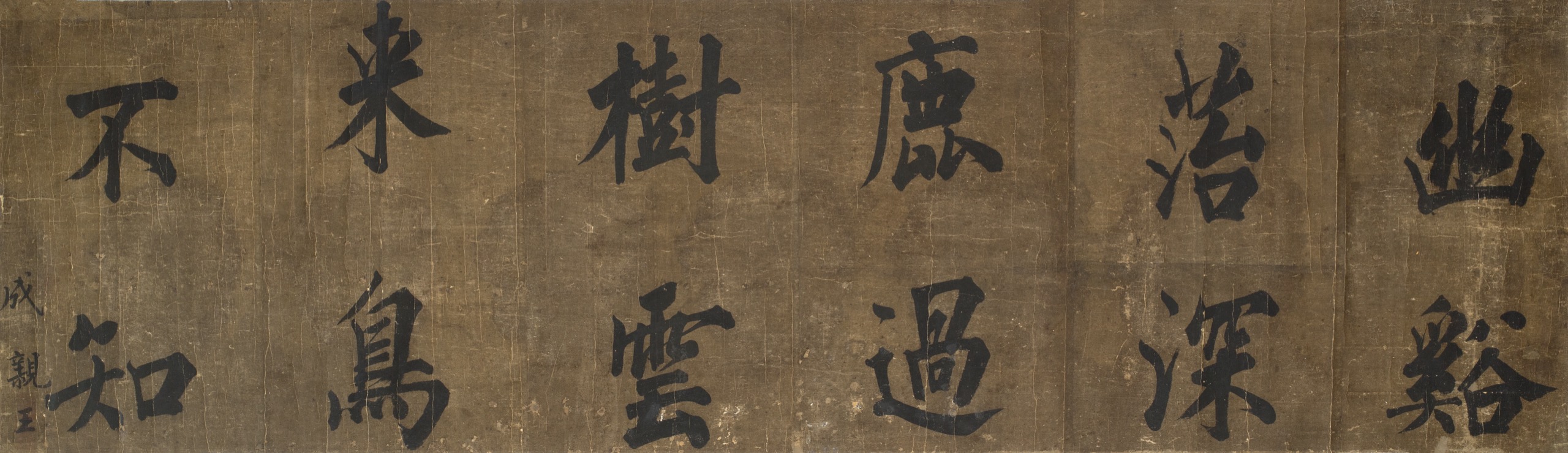 首頁 拍品總覽 2025夏季 share Lot. 3224 成親王Cheng Ching-Wang 1752-1823 書法條幅 NT$ 80,000-100,000RMB¥ 16,000-20,000HK$ 20,000-25,000 媒材/尺寸 立軸 水墨 紙本, 51x178cm 返回拍品列表 拍品推薦 3335 梁又銘、王王孫、王壯為 三陽開泰、如意、吉羊(三件一組) 預估價:NT$ 20,000-30,000 2025夏季 3246 亞明 漁舟唱晚 預估價:NT$ 15,000-30,000 2025夏季 3274 李奇茂 牧牛高升圖 預估價:NT$ 20,000-30,000 2025夏季 3212 溥心畬 硃砂鍾馗 預估價:NT$ 200,000-300,000 2025夏季 3017 奚岡 倣倪瓚秋林野興圖 預估價:NT$ 400,000-600,000 2025夏季 3031 張大千 行書《我行我素》 預估價:NT$ 200,000-300,000 2025夏季 3207 吳滔 花卉冊頁(十開) 預估價:NT$ 50,000-80,000 2025夏季 3362 薛志揚 壽而康(印章) 預估價:NT$ 35,000-50,000 2025夏季 3178 李義弘 閒聽松風圖 預估價:NT$ 80,000-120,000 2025夏季 3282 江明賢 百合花 預估價:NT$ 10,000-30,000 2025夏季