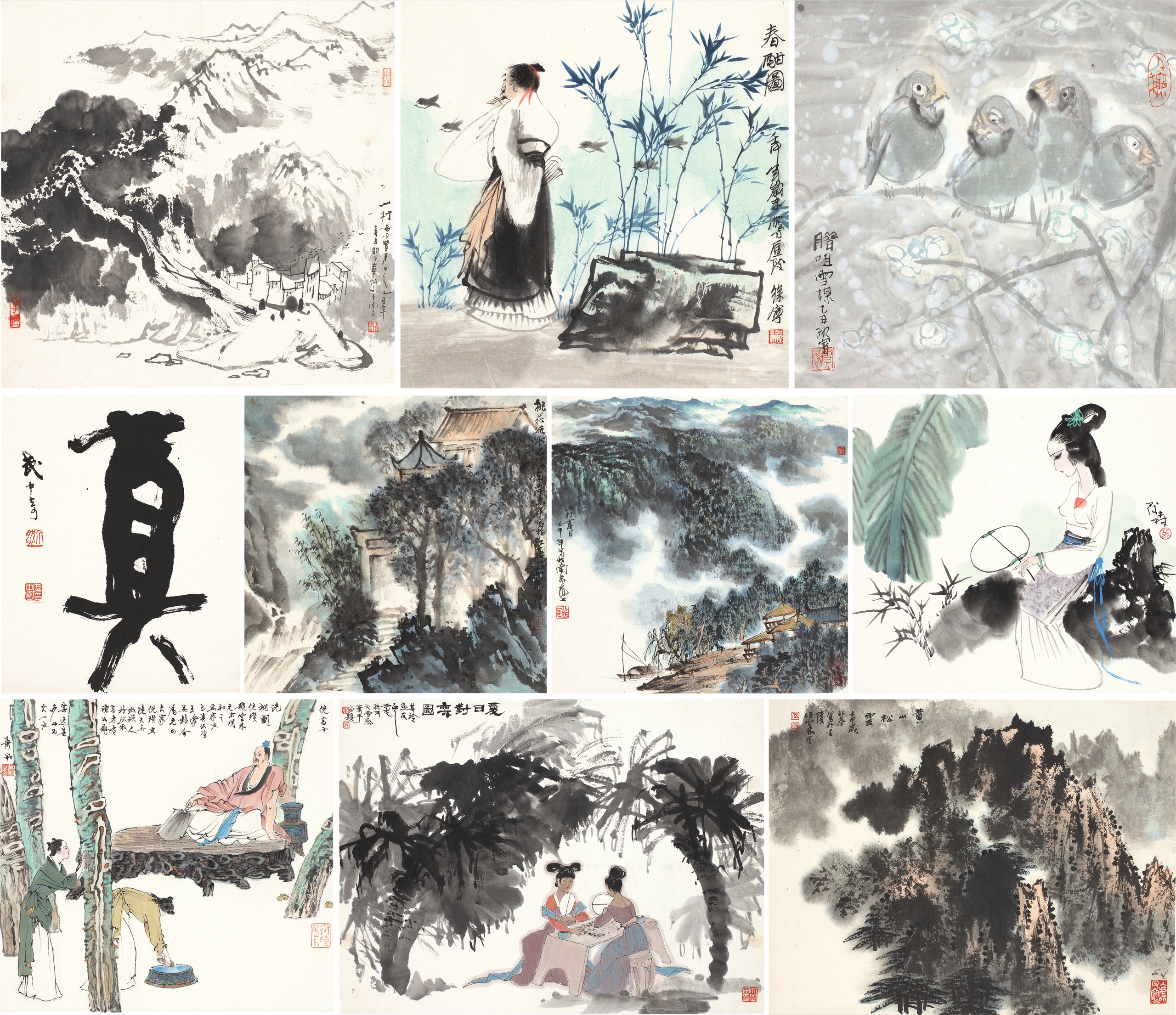 冊頁 設色 紙本, 33x35cm x10