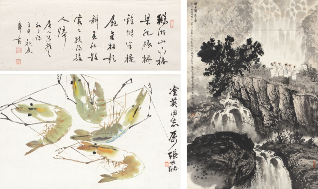 立軸 水墨、設色 紙本, 93x64cm、(18x45cm、28x45cm)