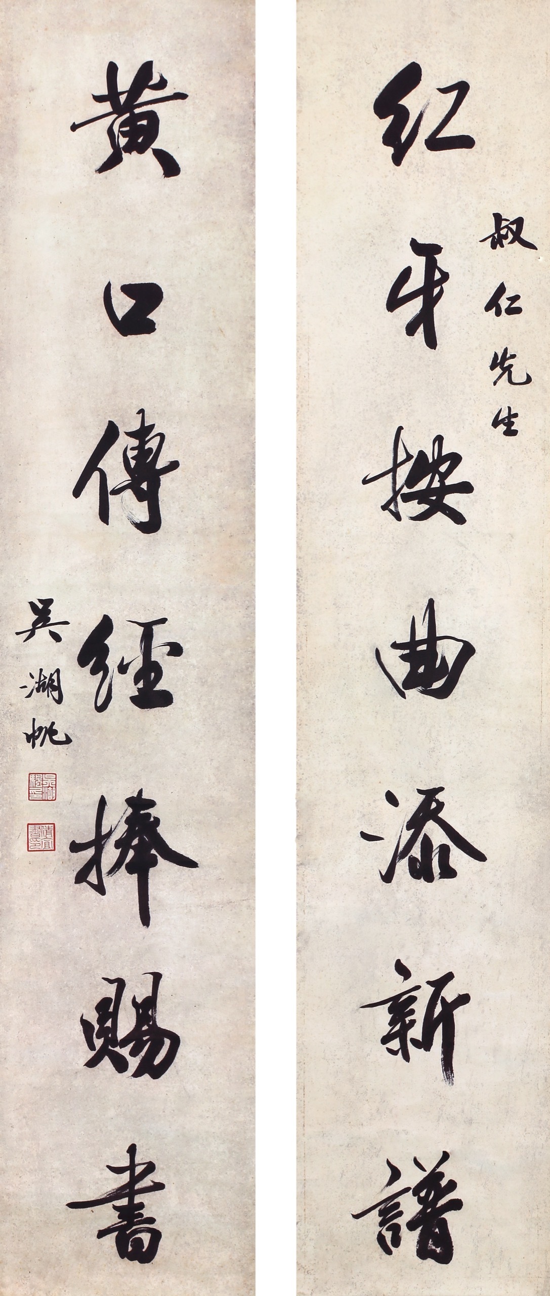 紅牙按曲添新譜,黃口傳經捧賜書。叔仁先生,吳湖帆。