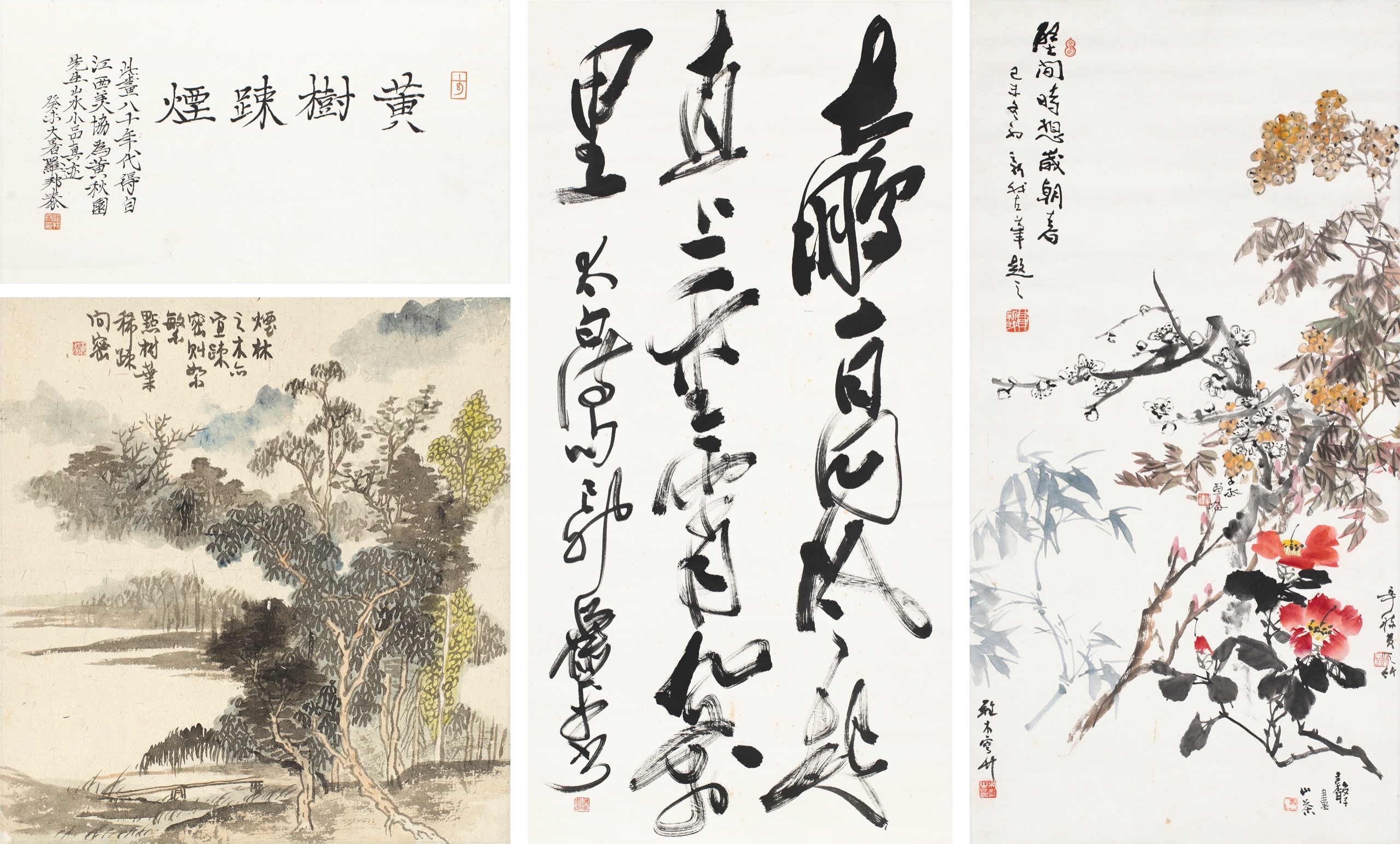 鏡片 設色 紙本、立軸 水墨 紙本、立軸 設色 紙本, (18x32cm、34x32cm)、135.5x68.5cm、97x49cm