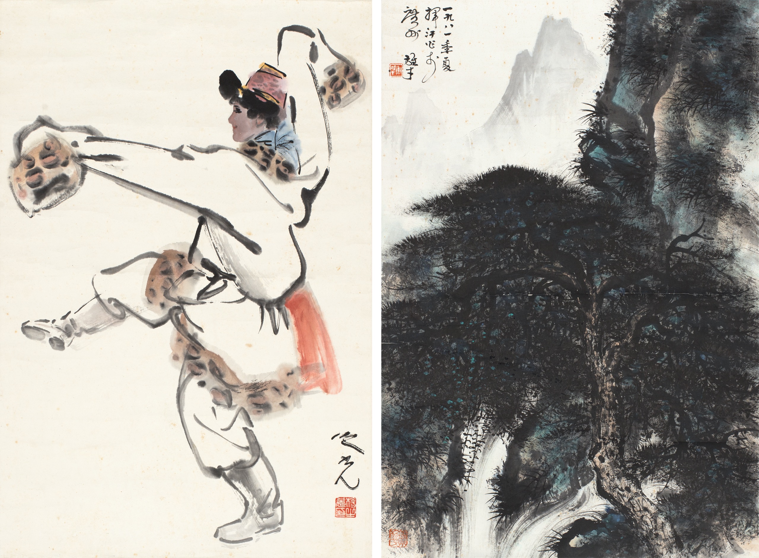 舞人圖、松林圖(二件一組)
