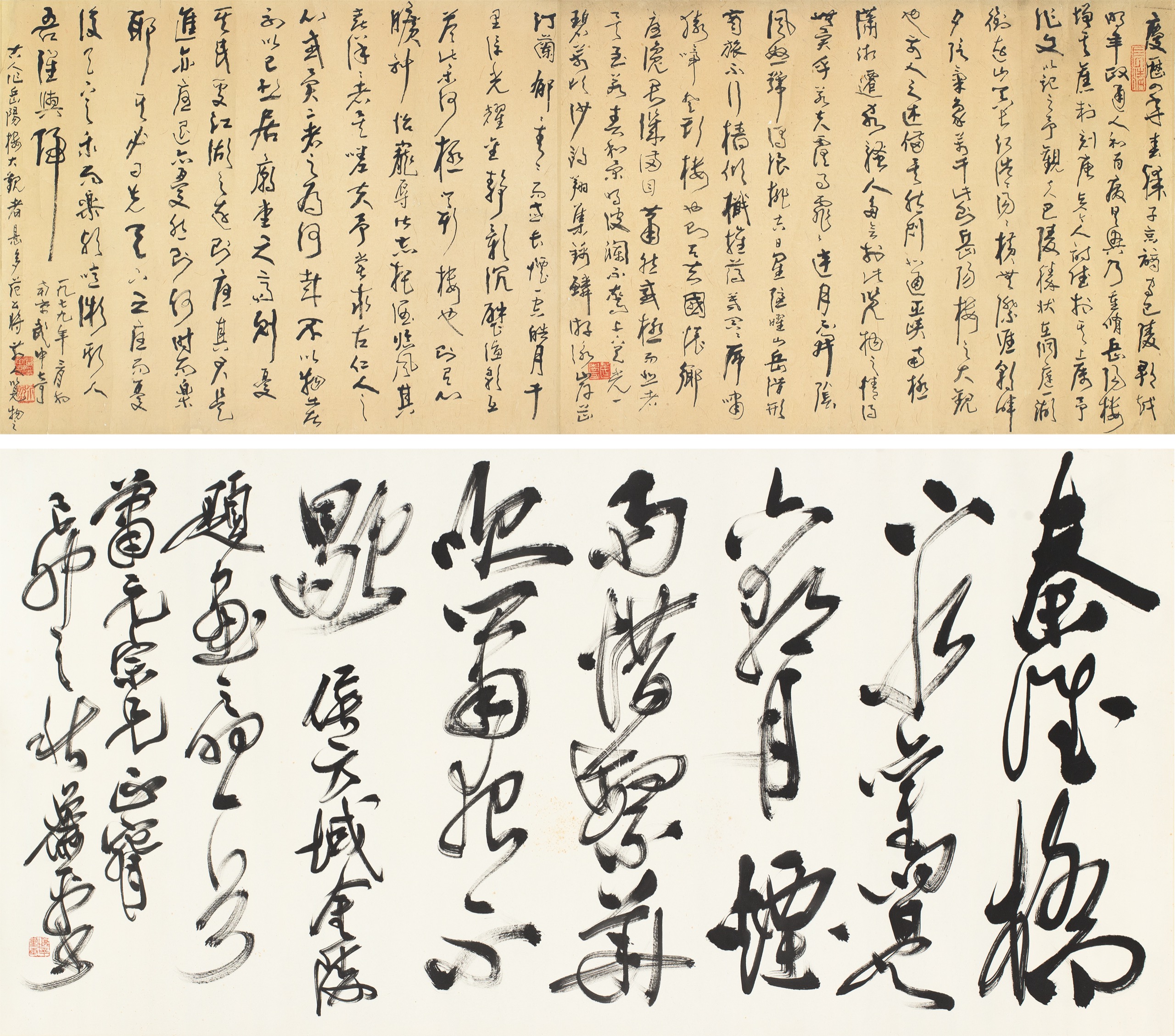 鏡片 水墨 紙本, 68.5x136.5cm、53.5x143.5cm